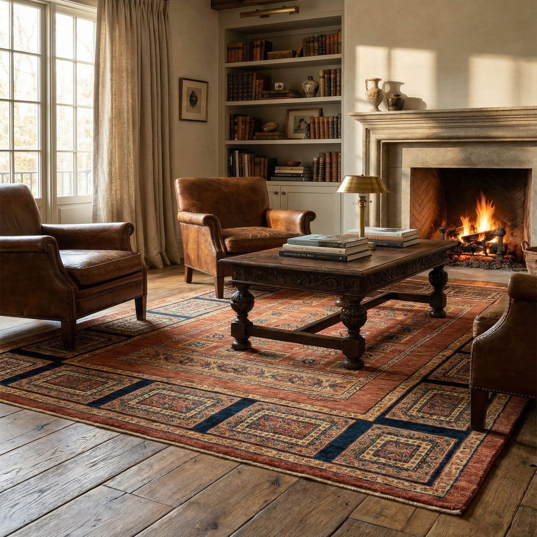 Primary color is Brown. Colors in this rug include: Brown, Beige.