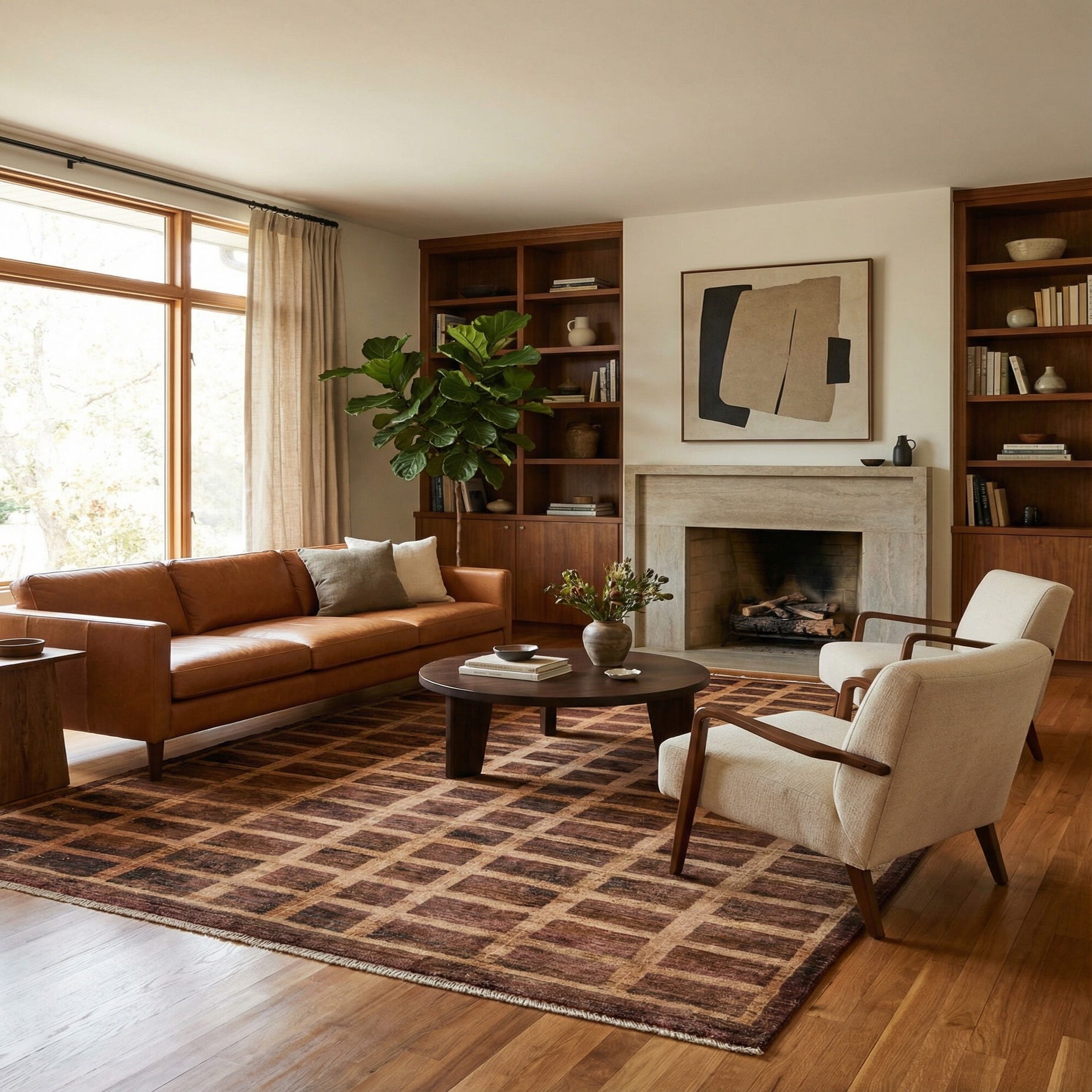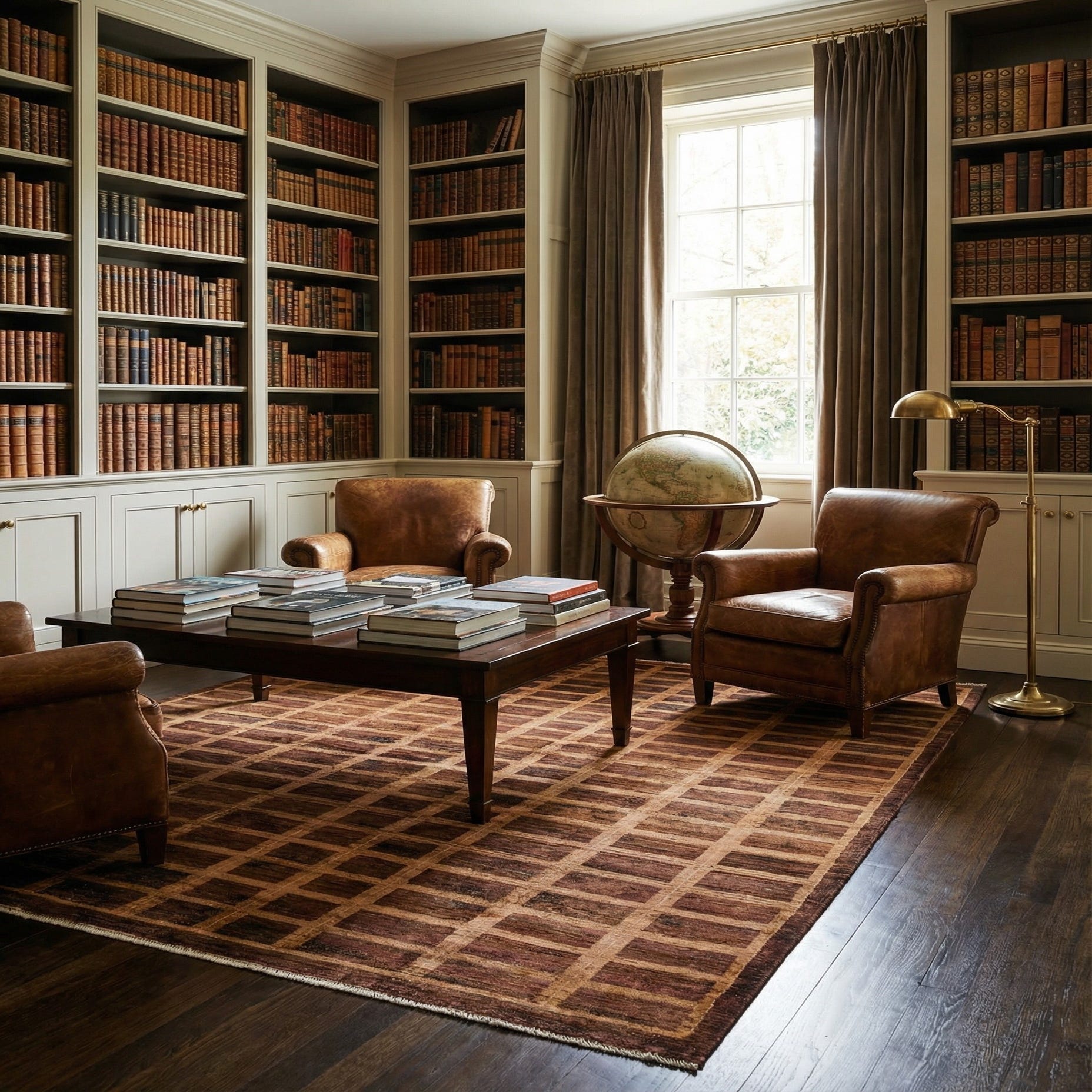 Primary color is Brown. Colors in this rug include: Brown, Beige.