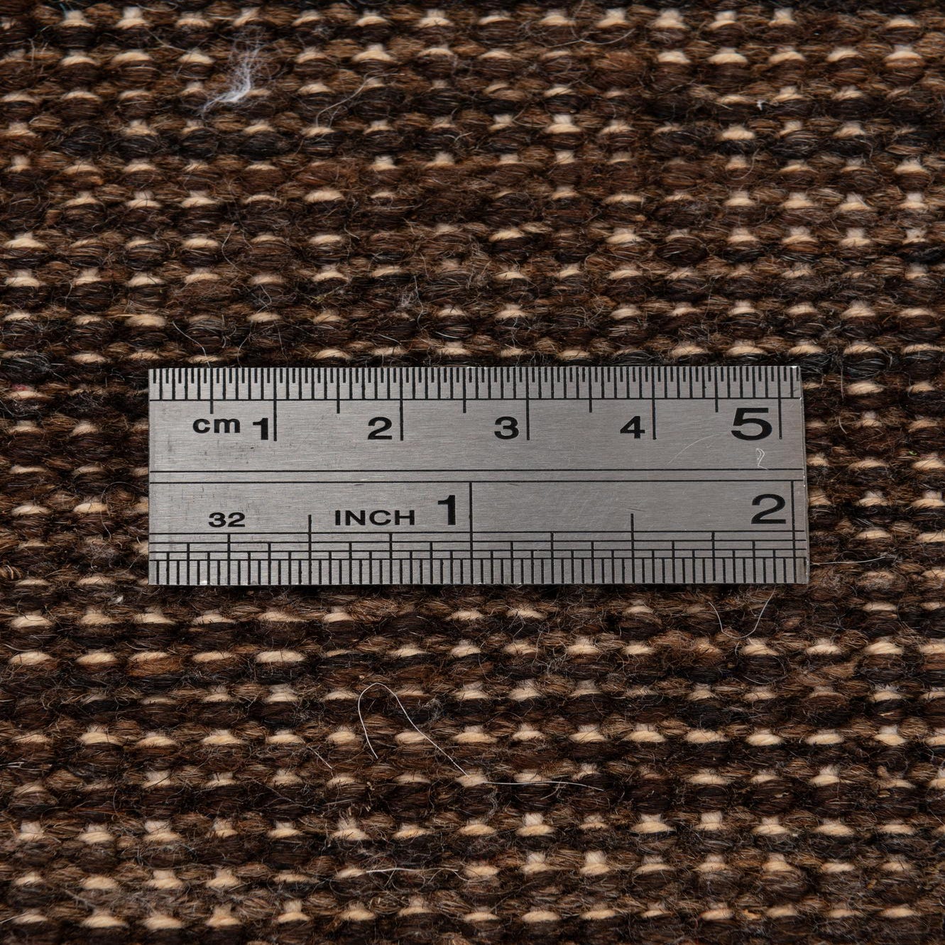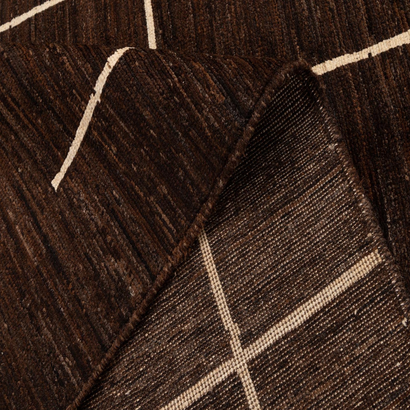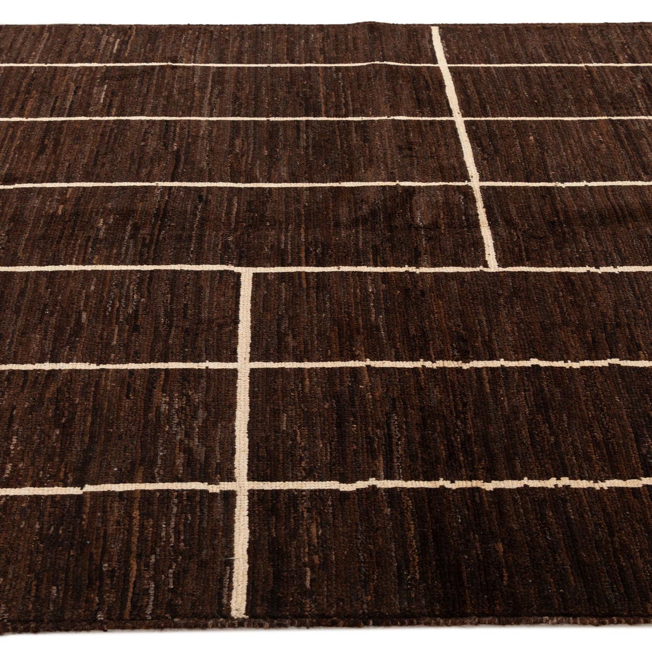 Primary color is Brown. Colors in this rug include: Brown, Ivory.