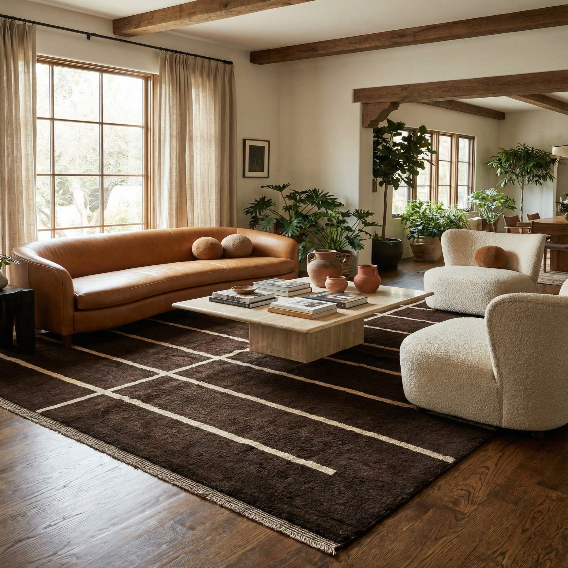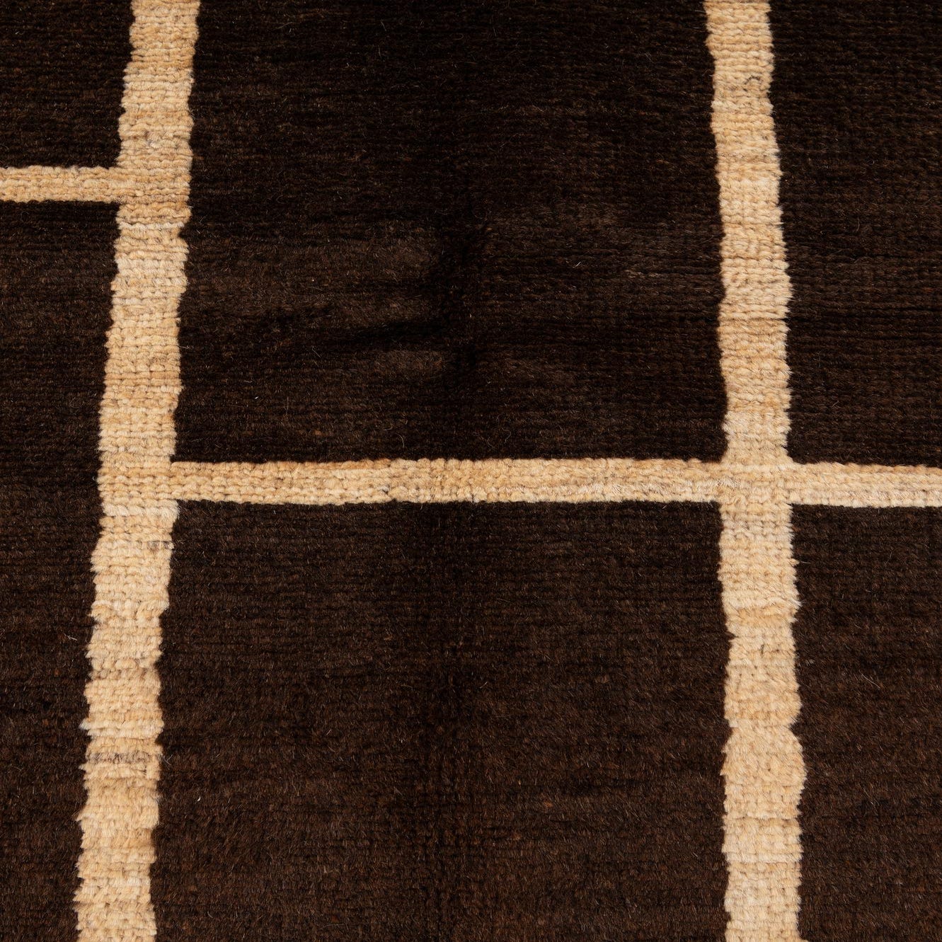 Primary color is Brown. Colors in this rug include: Brown, Ivory.