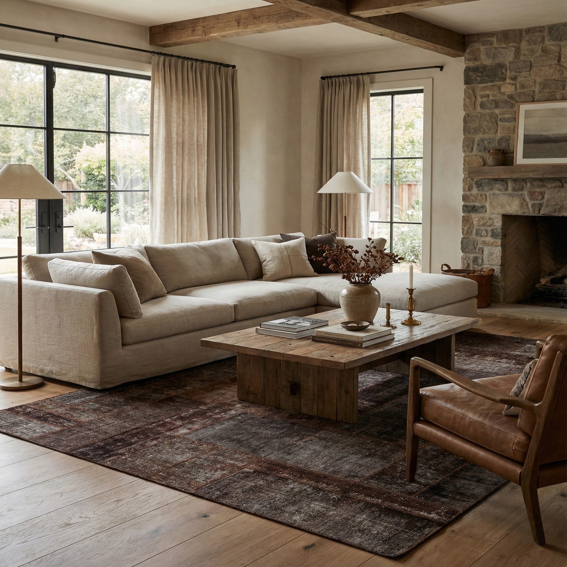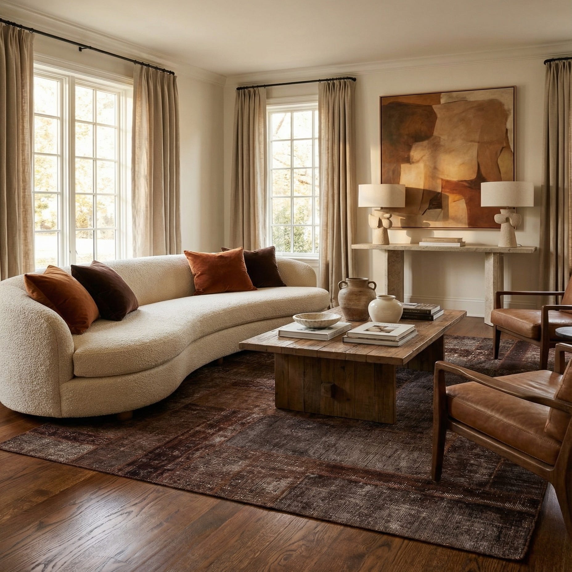 Primary color is Brown. Colors in this rug include: Brown, Ivory, Light Brown.