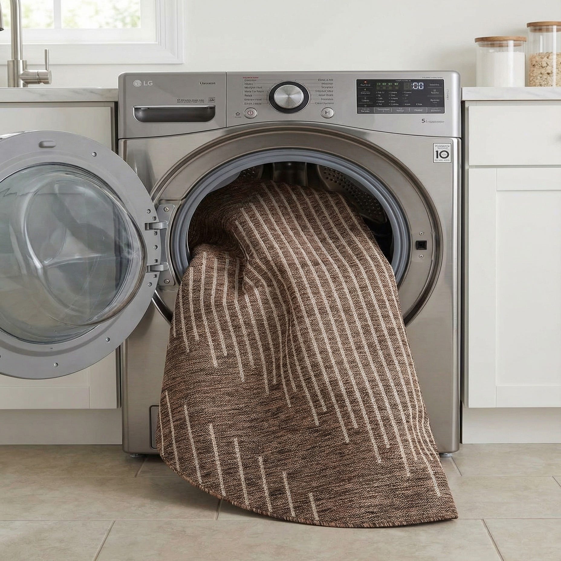 Primary color is Brown. Colors in this rug include: Brown, Ivory.