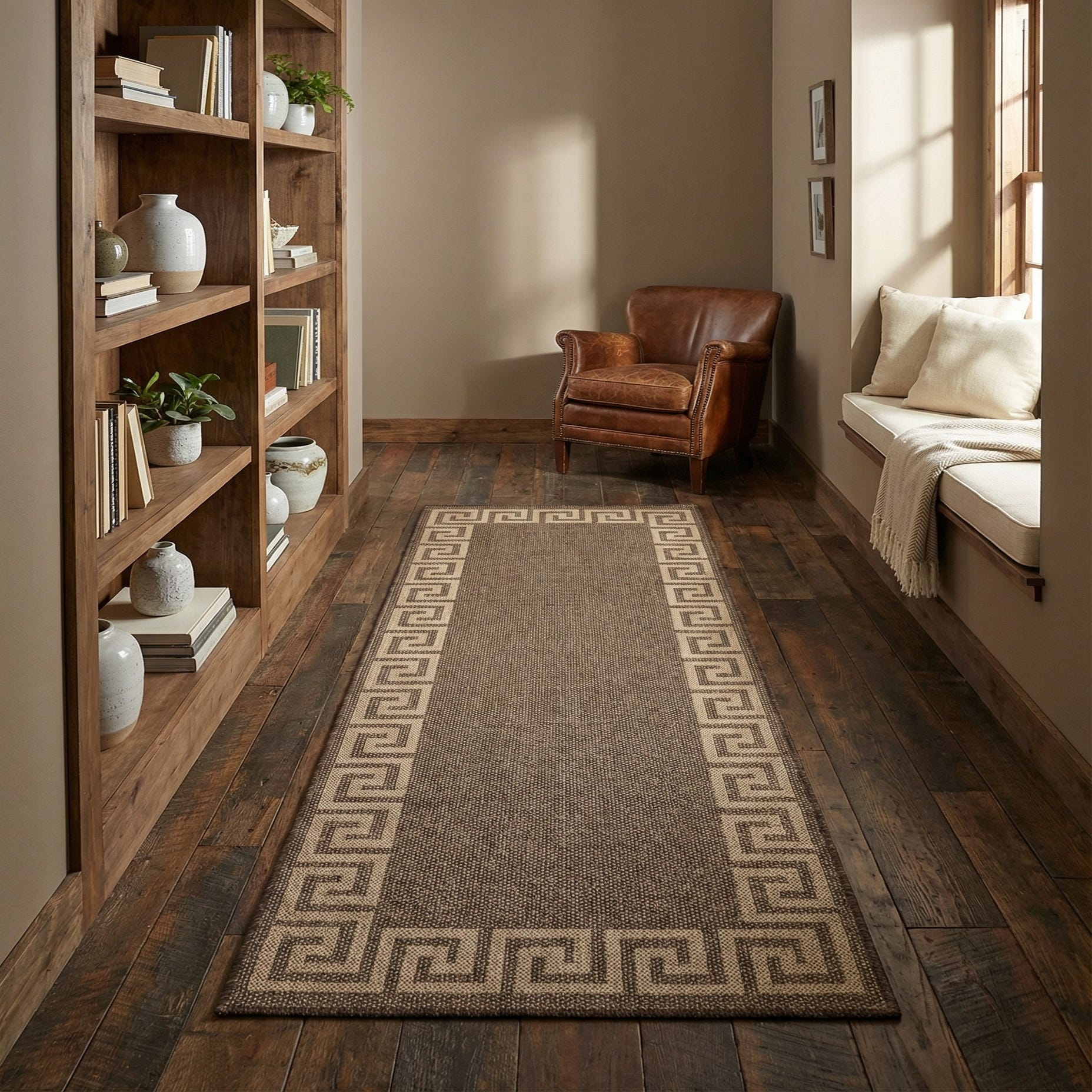 Primary color is Brown. Colors in this rug include: Brown, Natural.