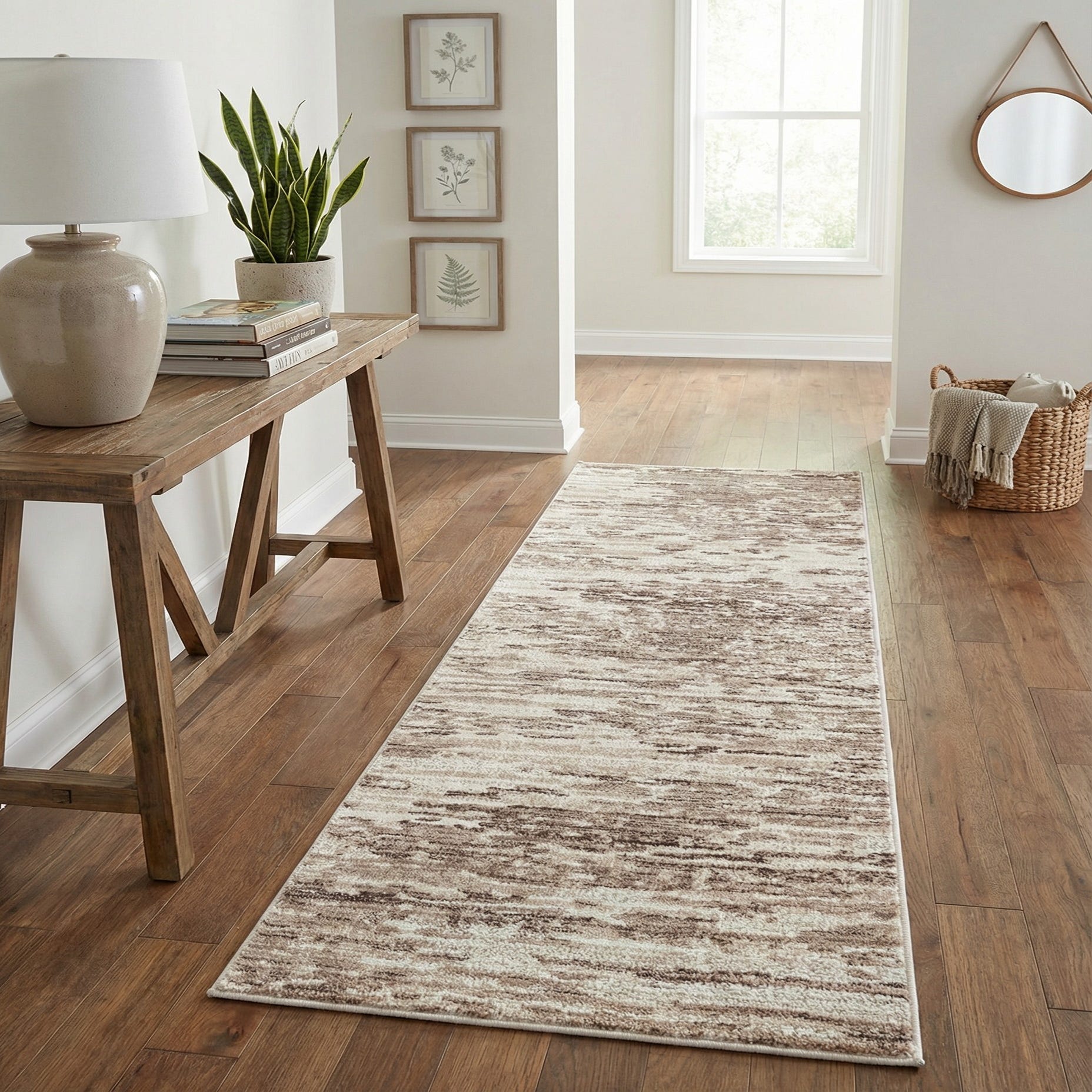 Primary color is Brown. Colors in this rug include: Brown, Beige, Ivory.