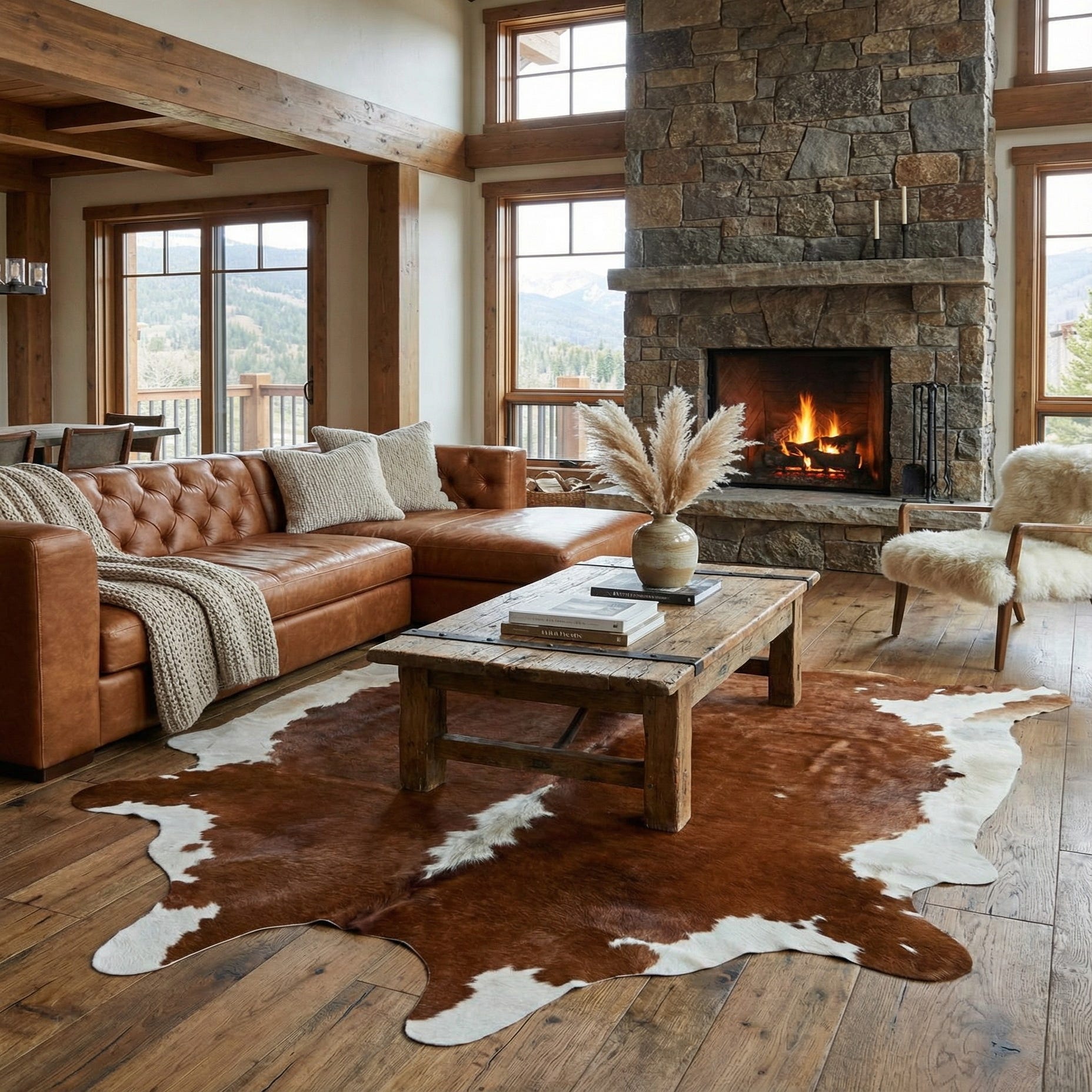 6' 2 x 6' 8 Cowhide Leather Square Rug