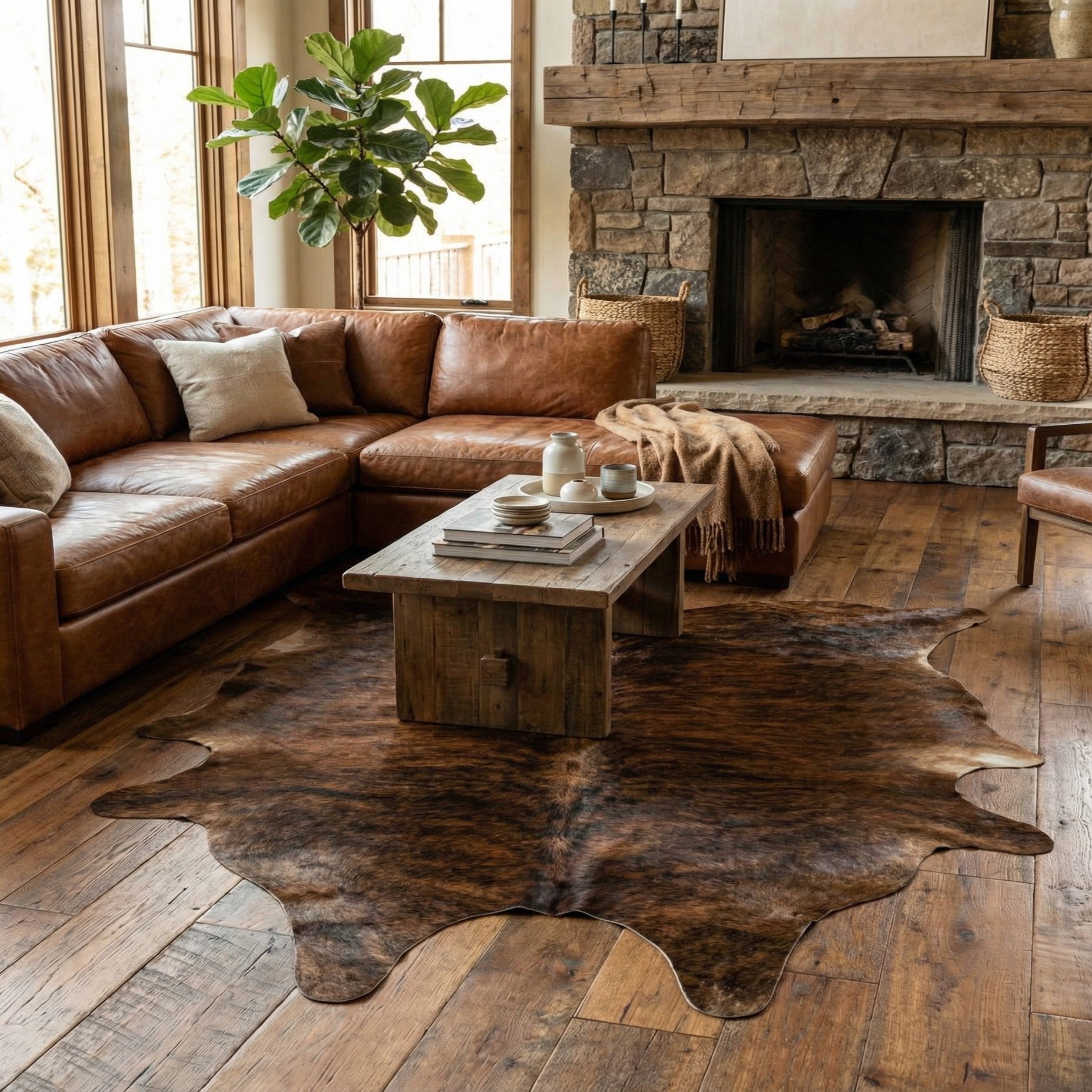 5' 8 x 6' 2 Cowhide Leather Square Rug