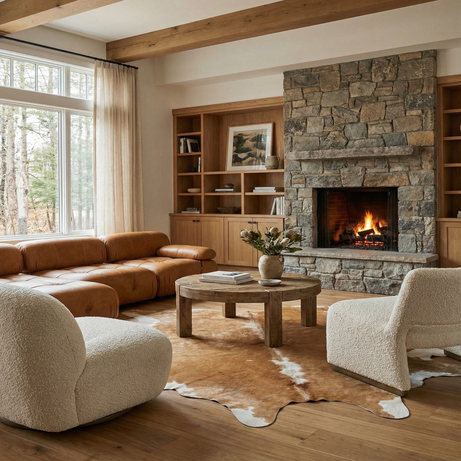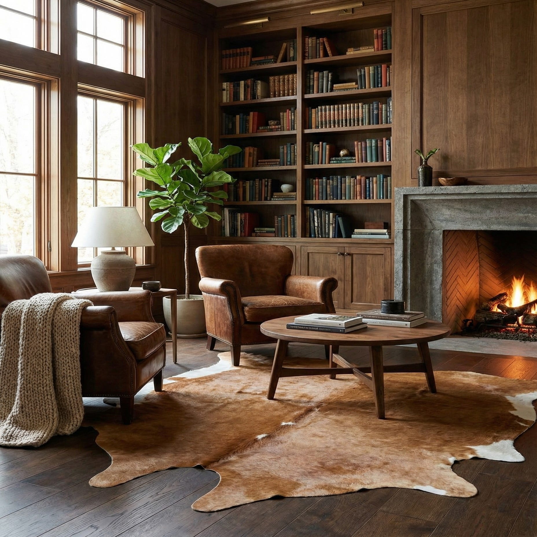 6' 5 x 6' 7 Cowhide Leather Square Rug