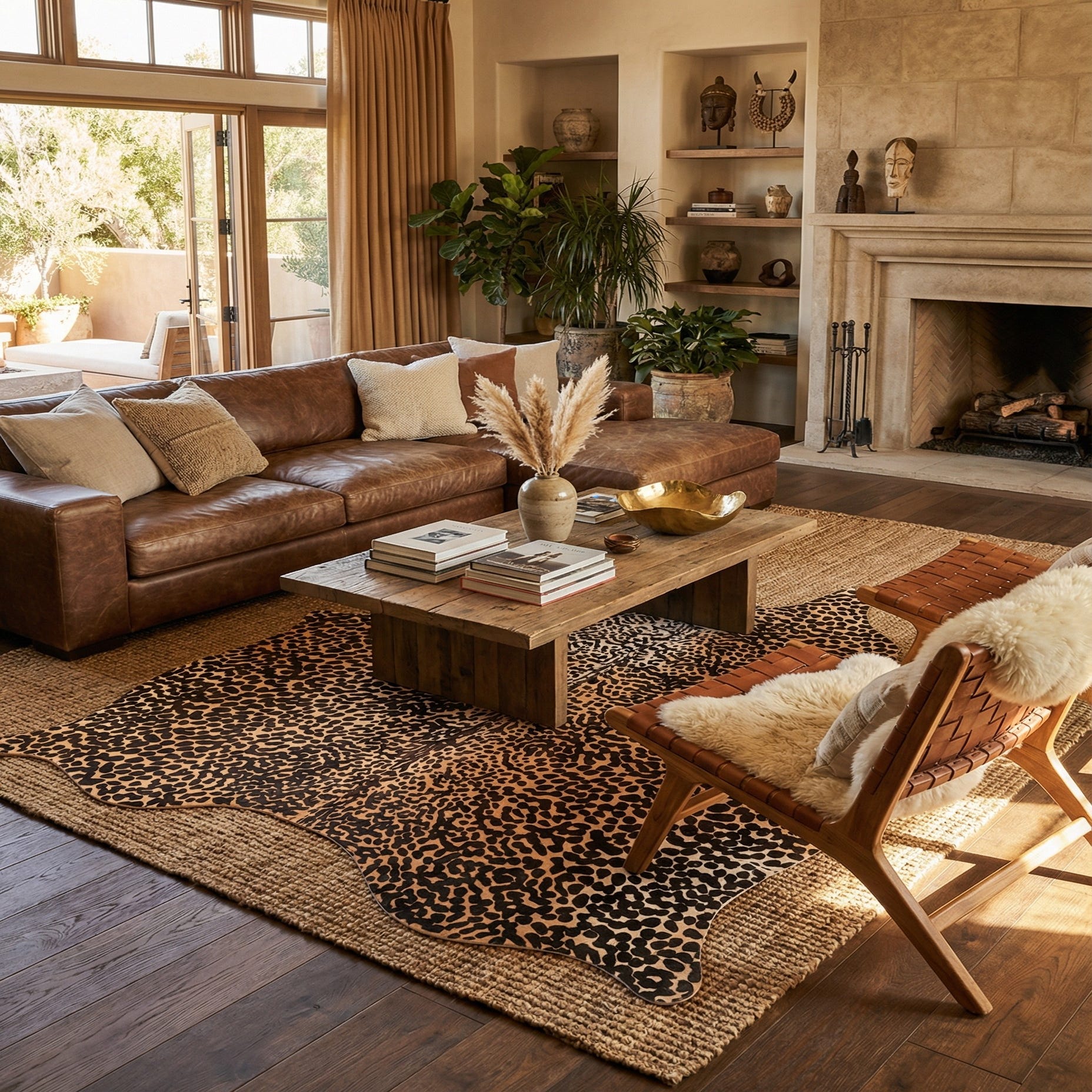 6' 2 x 6' 8 Cowhide Leather Square Rug