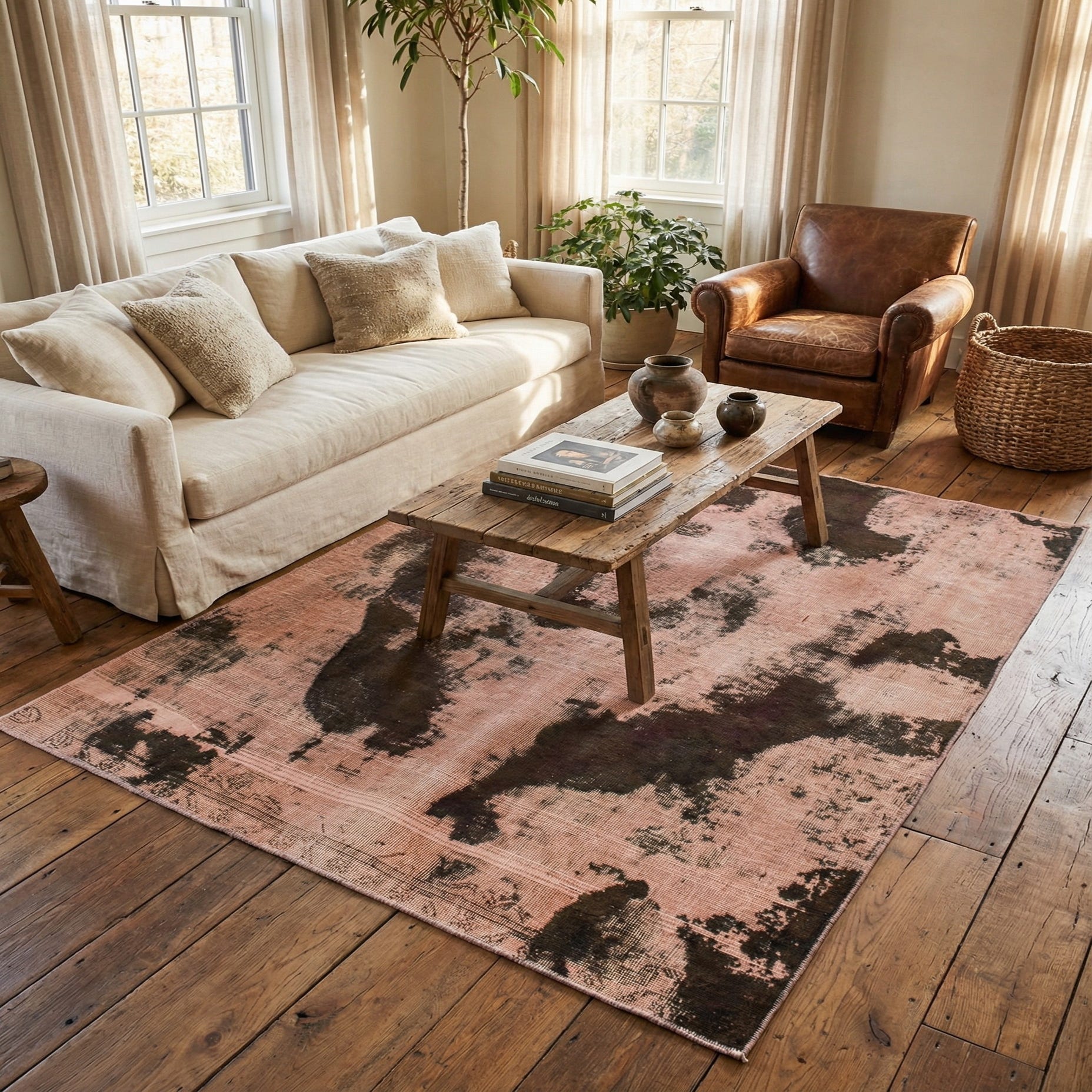 This Persian Ultra Vintage rug is an antique Persian Rug that has been washed, over-dyed, and then shaved down to a low pile. Look at the detail pictures to fully appreciate the uniqueness of this piece.