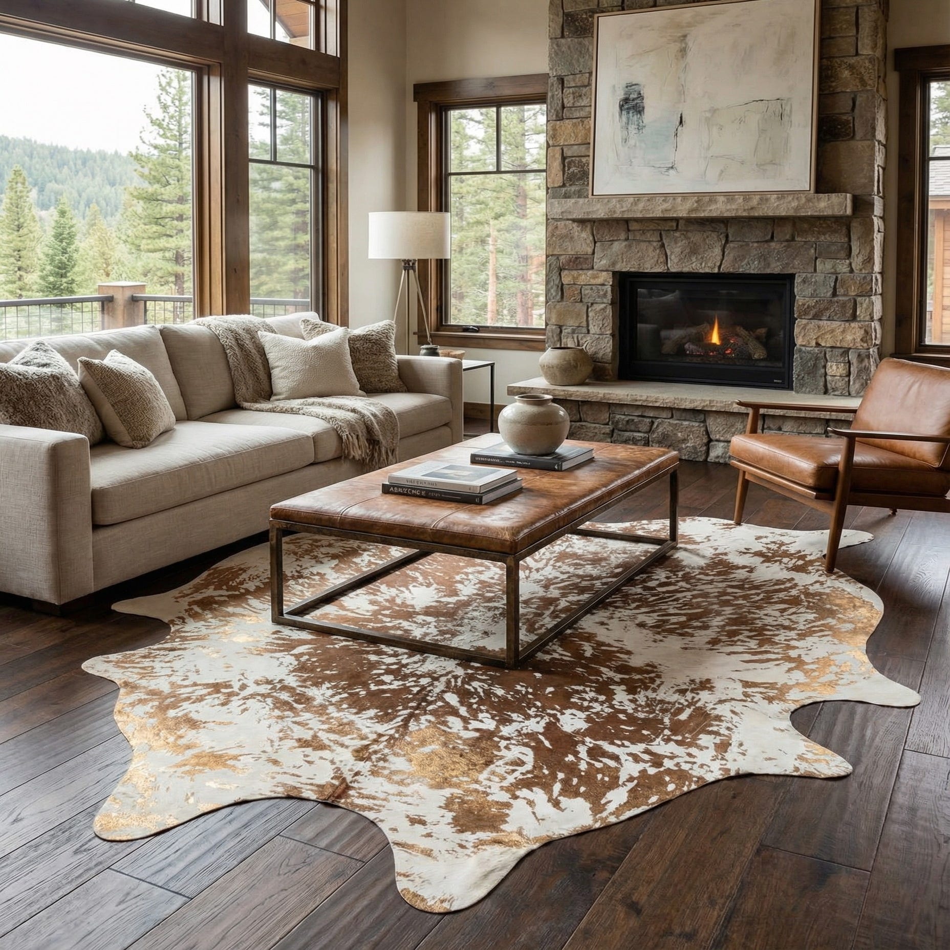 Detail image of 6' 7 x 7' 7 Cowhide Leather Rug
