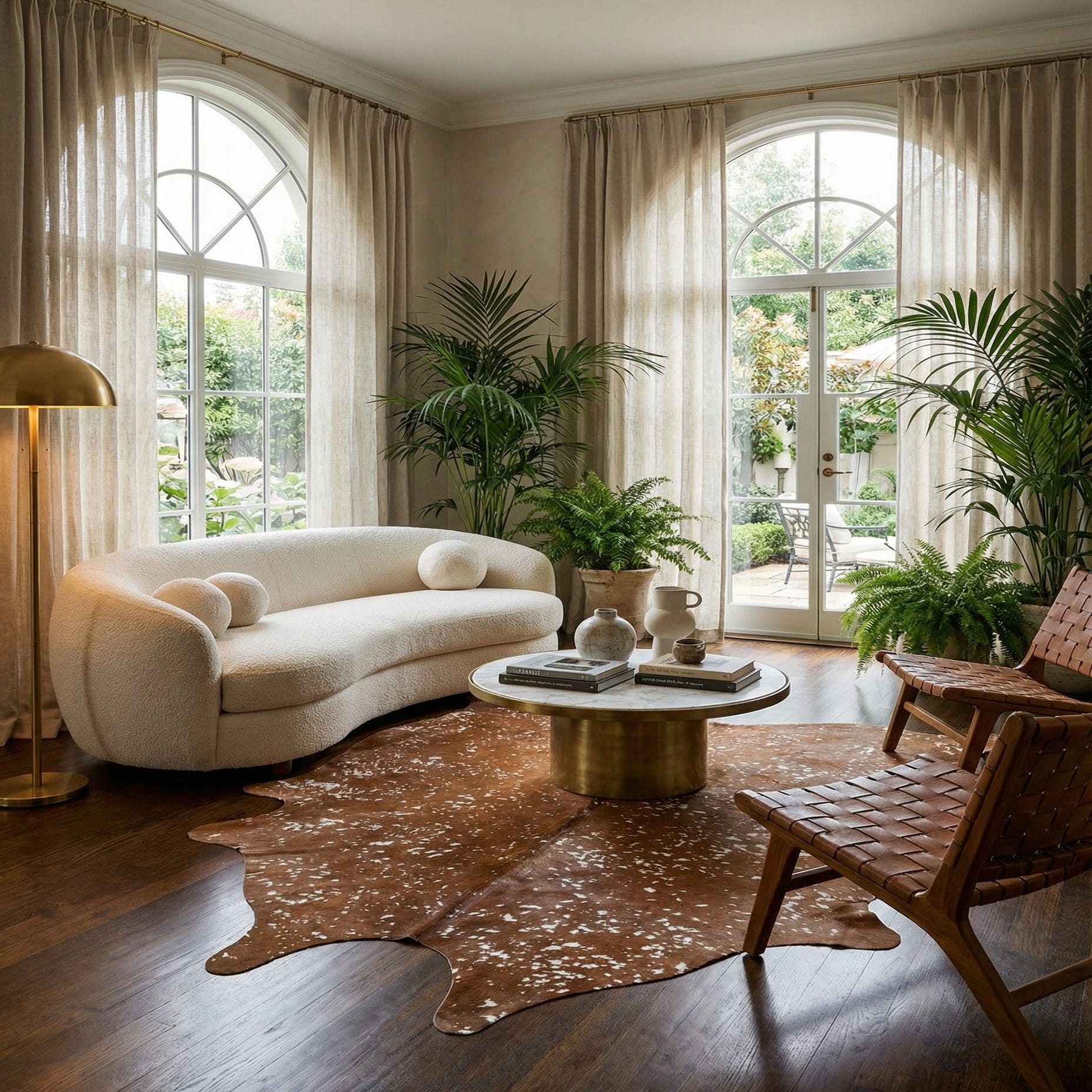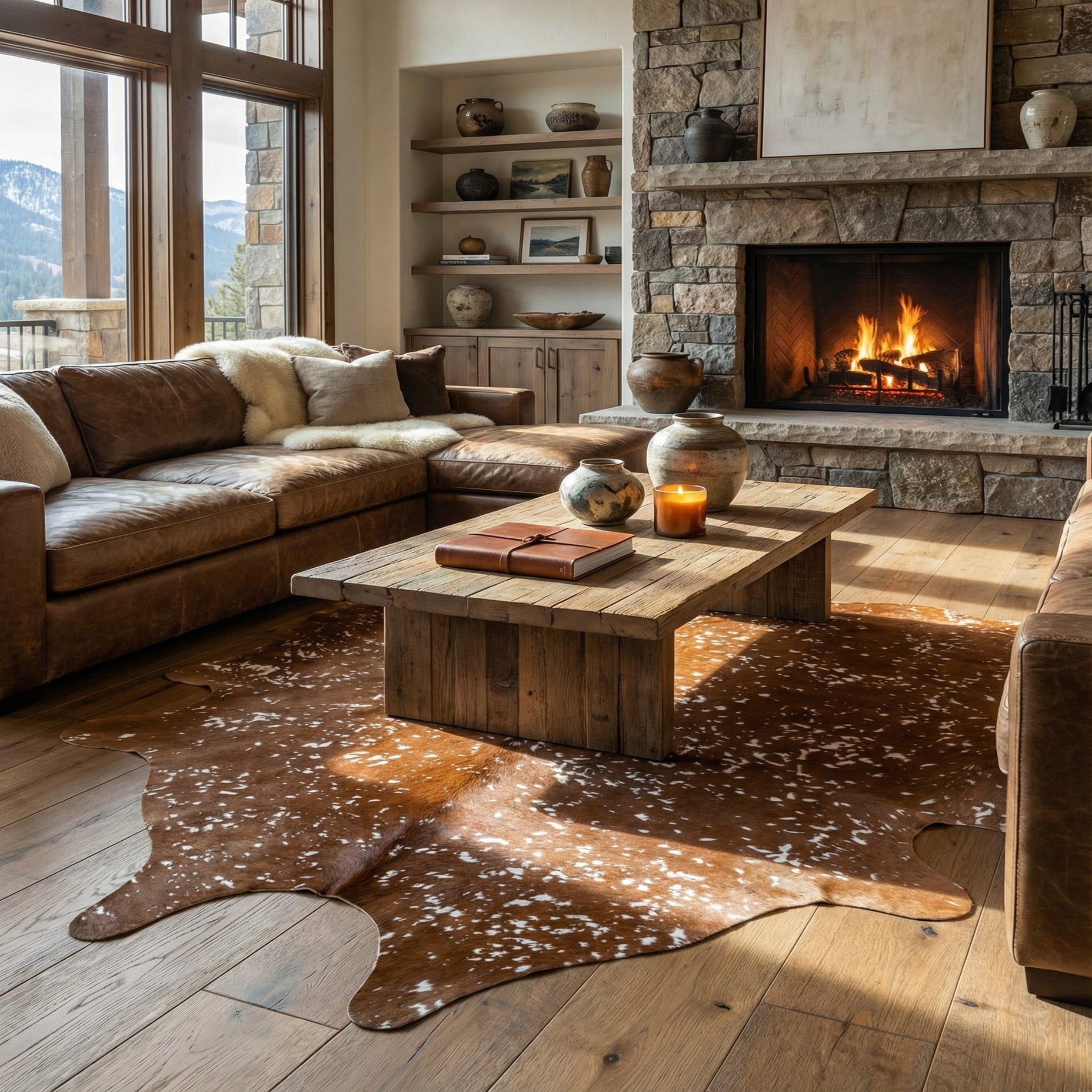 6' 10 x 7' 3 Cowhide Leather Freeform Rug