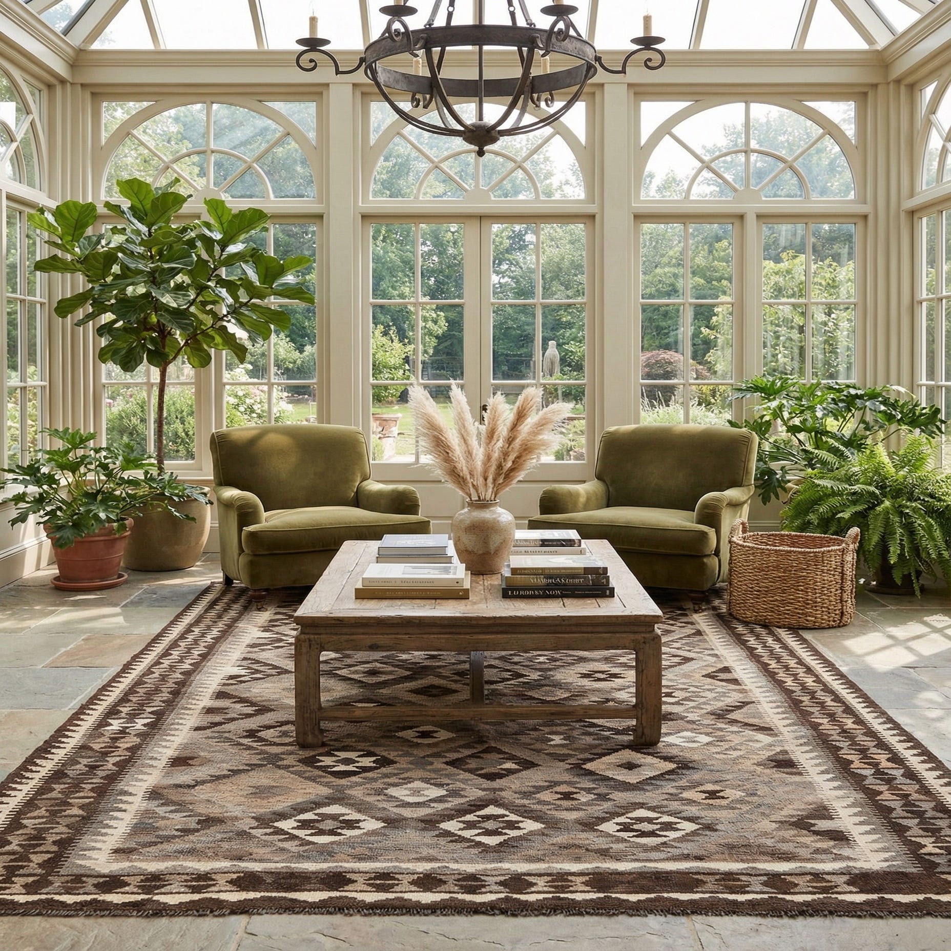 6' 8 x 9' Hand Woven Kilim Maymana Wool Rug