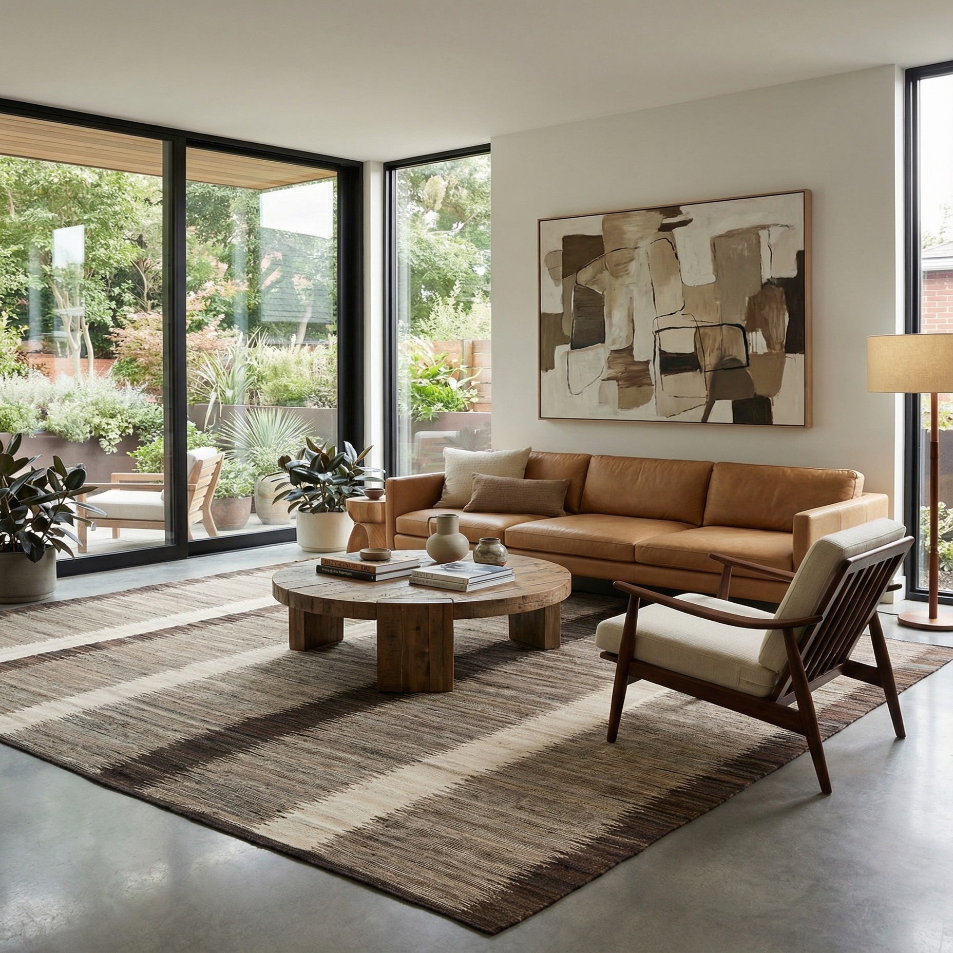 Primary color is Brown. Colors in this rug include: Brown, Beige.