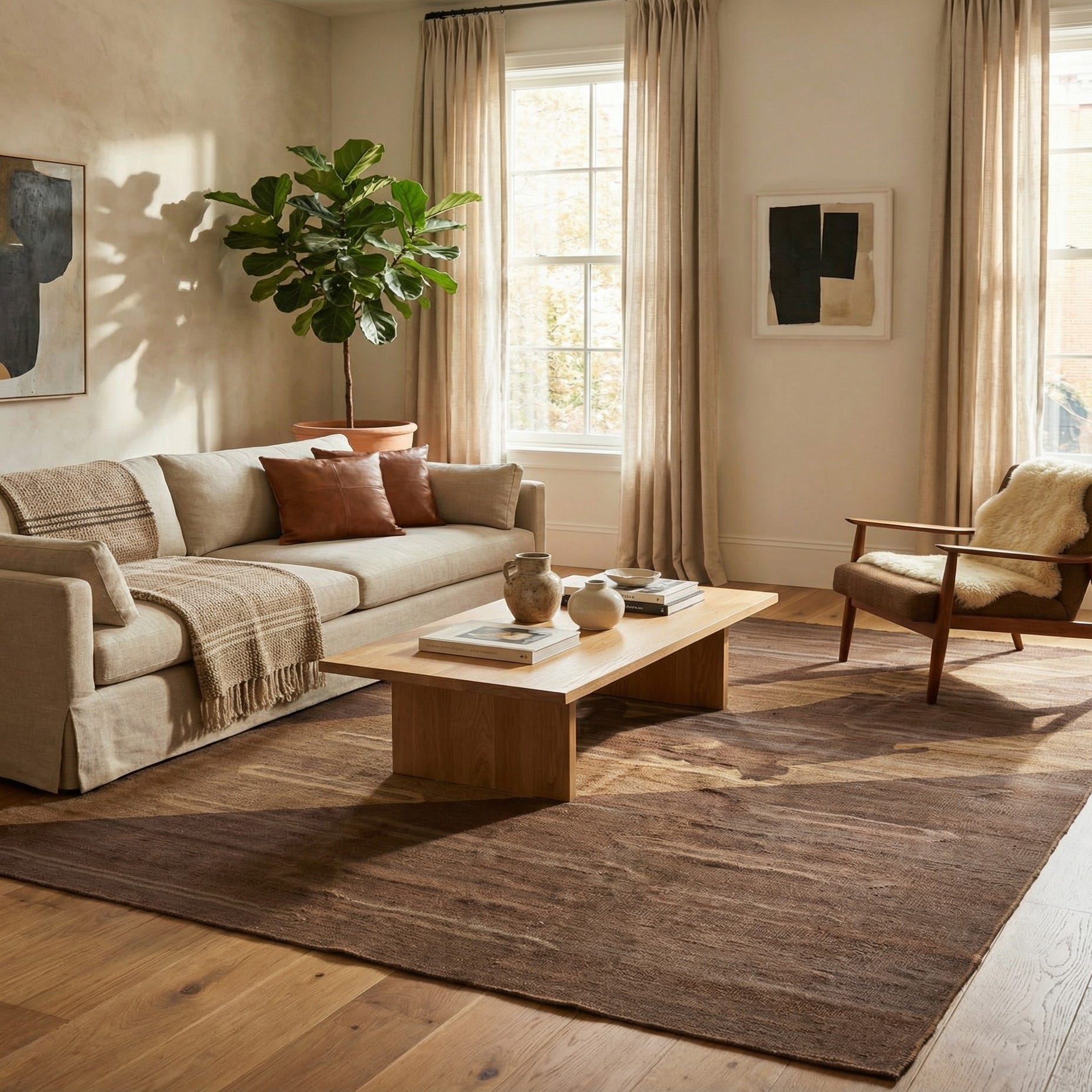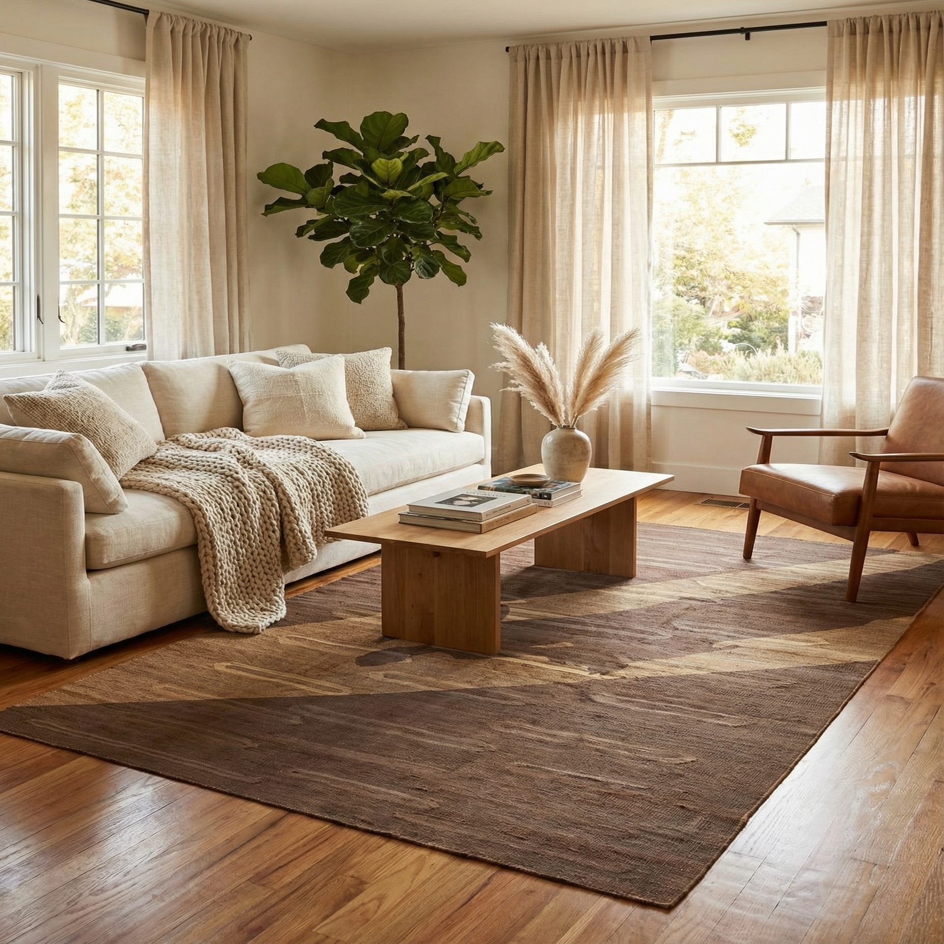 Primary color is Brown. Colors in this rug include: Brown, Beige, Ivory, Light Brown.
