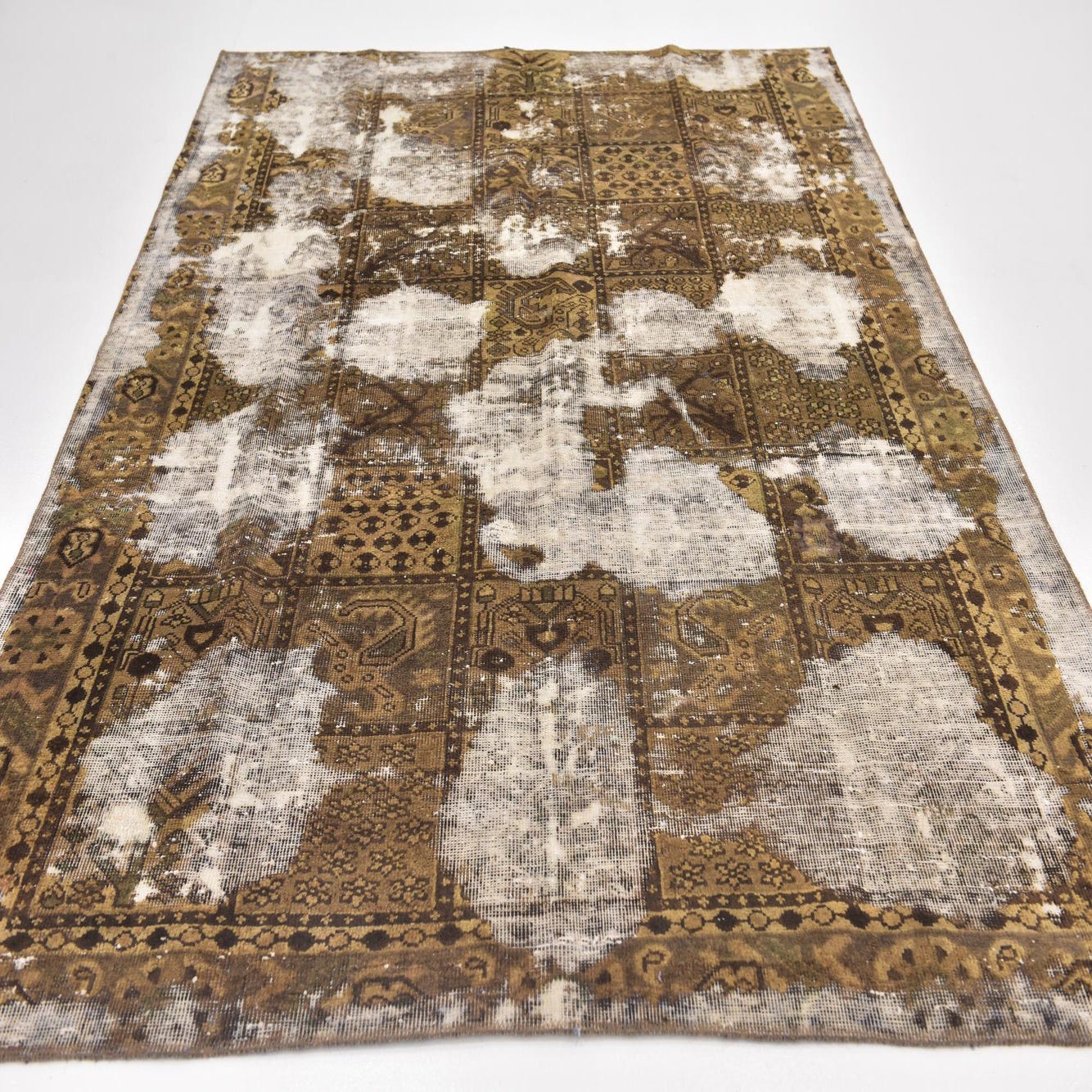 This Persian Ultra Vintage rug is an antique Persian Rug that has been washed, over-dyed, and then shaved down to a low pile. Look at the detail pictures to fully appreciate the uniqueness of this piece.