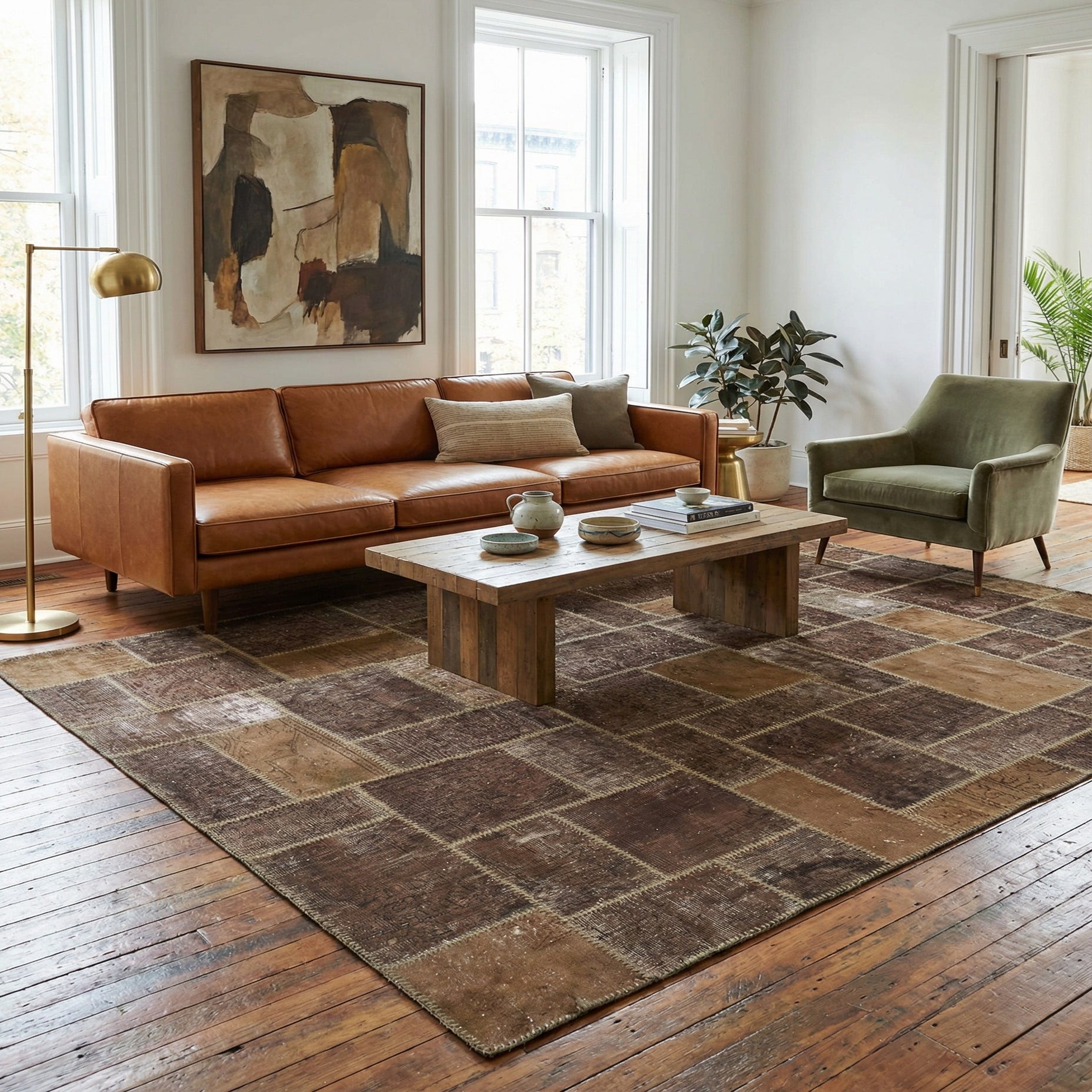 Primary color is Brown. Colors in this rug include: Brown, Beige, Ivory, Light Brown.