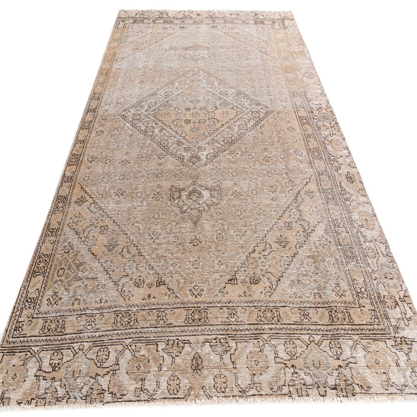 This Persian Ultra Vintage rug is an antique Persian Rug that has been washed, over-dyed, and then shaved down to a low pile. Look at the detail pictures to fully appreciate the uniqueness of this piece.