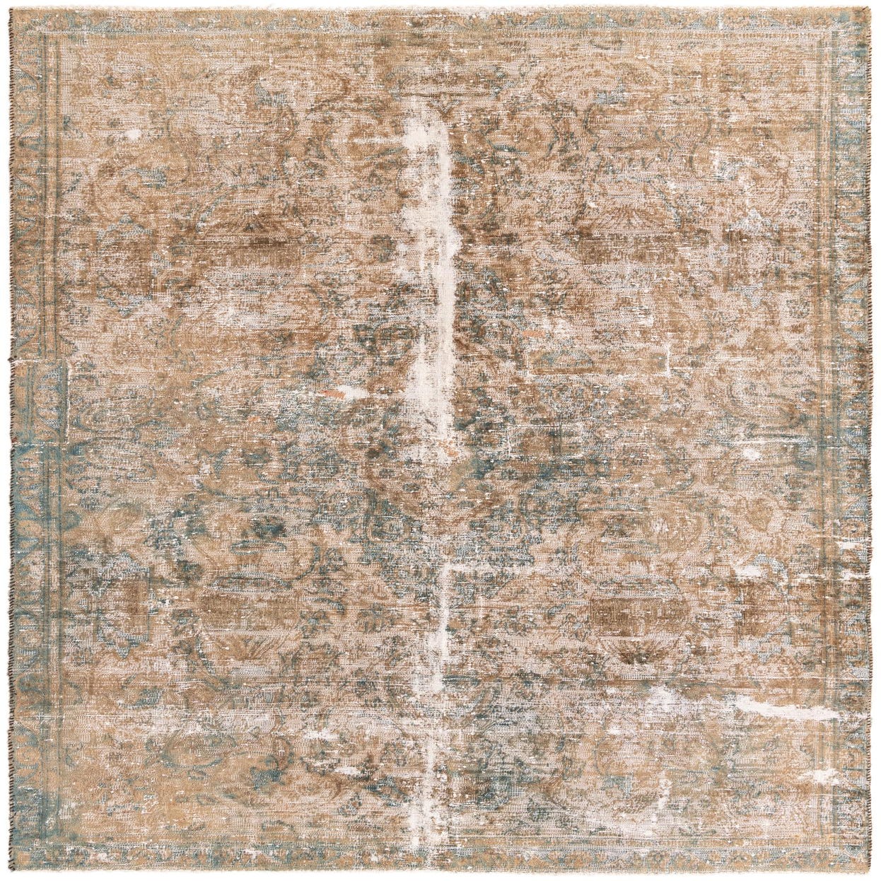This Persian Ultra Vintage rug is an antique Persian Rug that has been washed, over-dyed, and then shaved down to a low pile. Look at the detail pictures to fully appreciate the uniqueness of this piece.