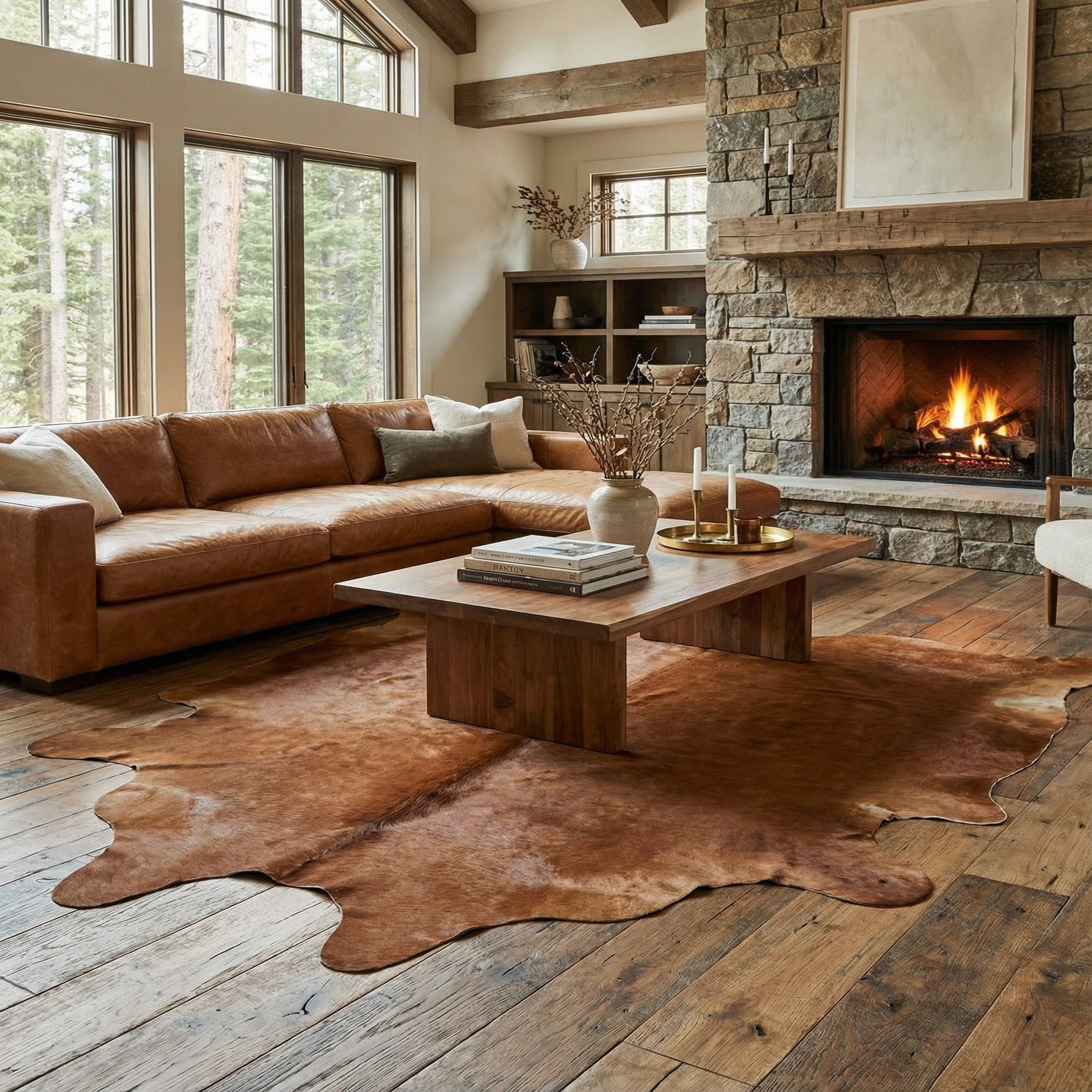 6' 5 x 6' 10 Cowhide Leather Square Rug
