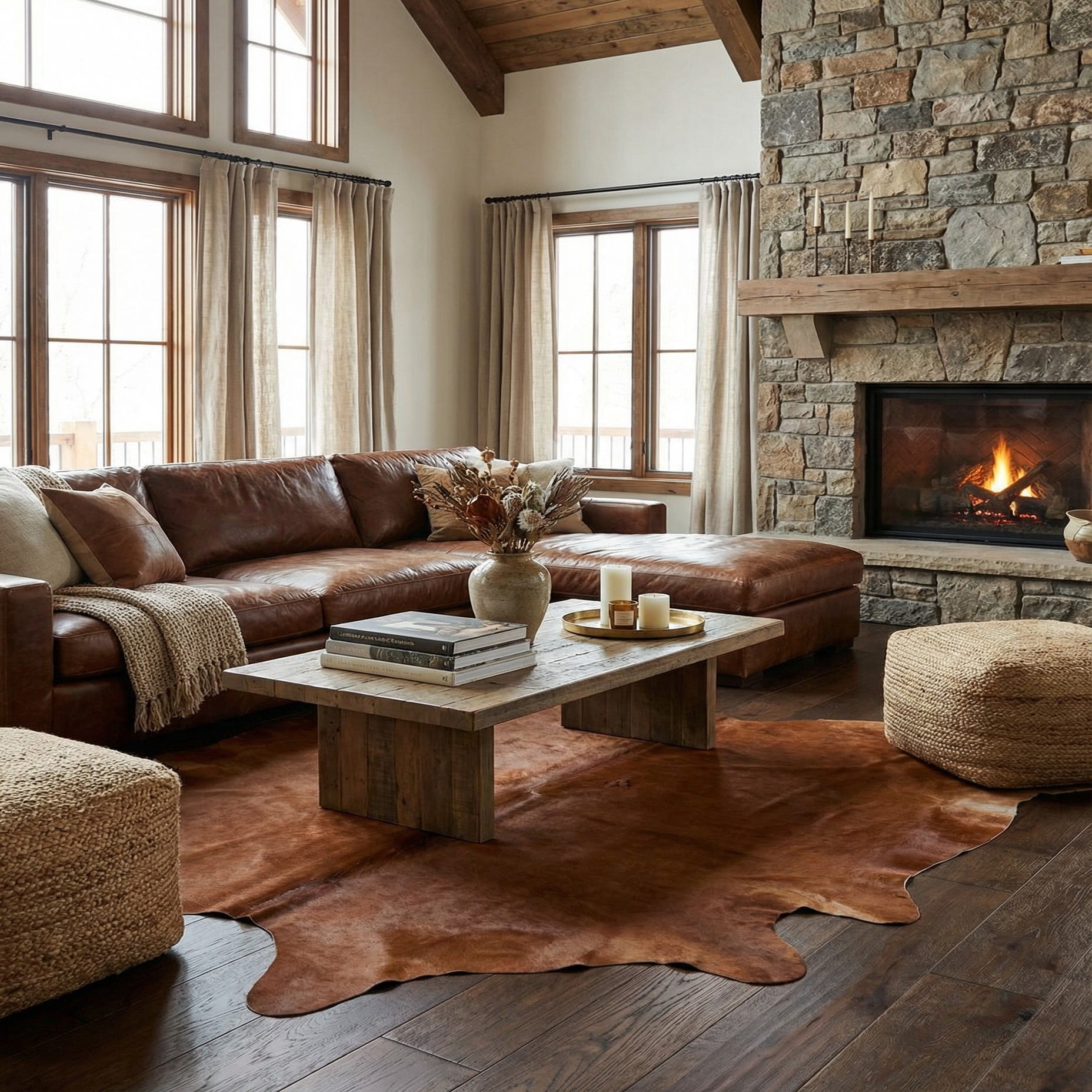 7' 2 x 7' 7 Cowhide Leather Square Rug