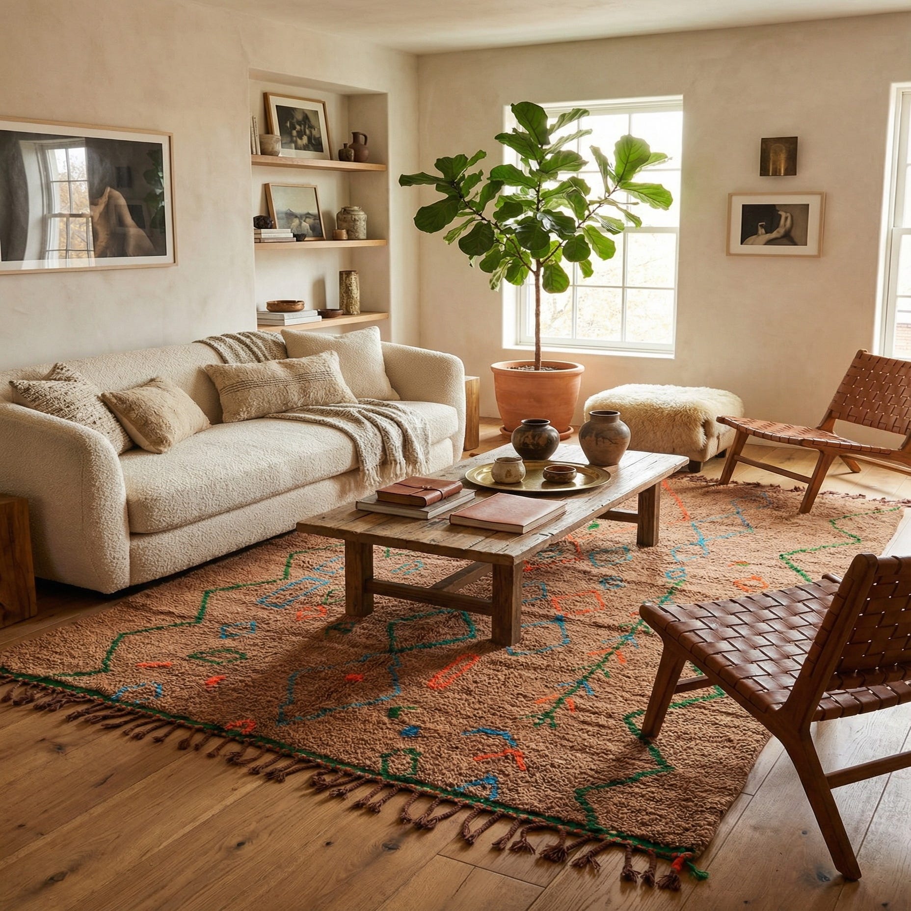 6' 10 x 9' 7 Hand Knotted Moroccan Wool Rug