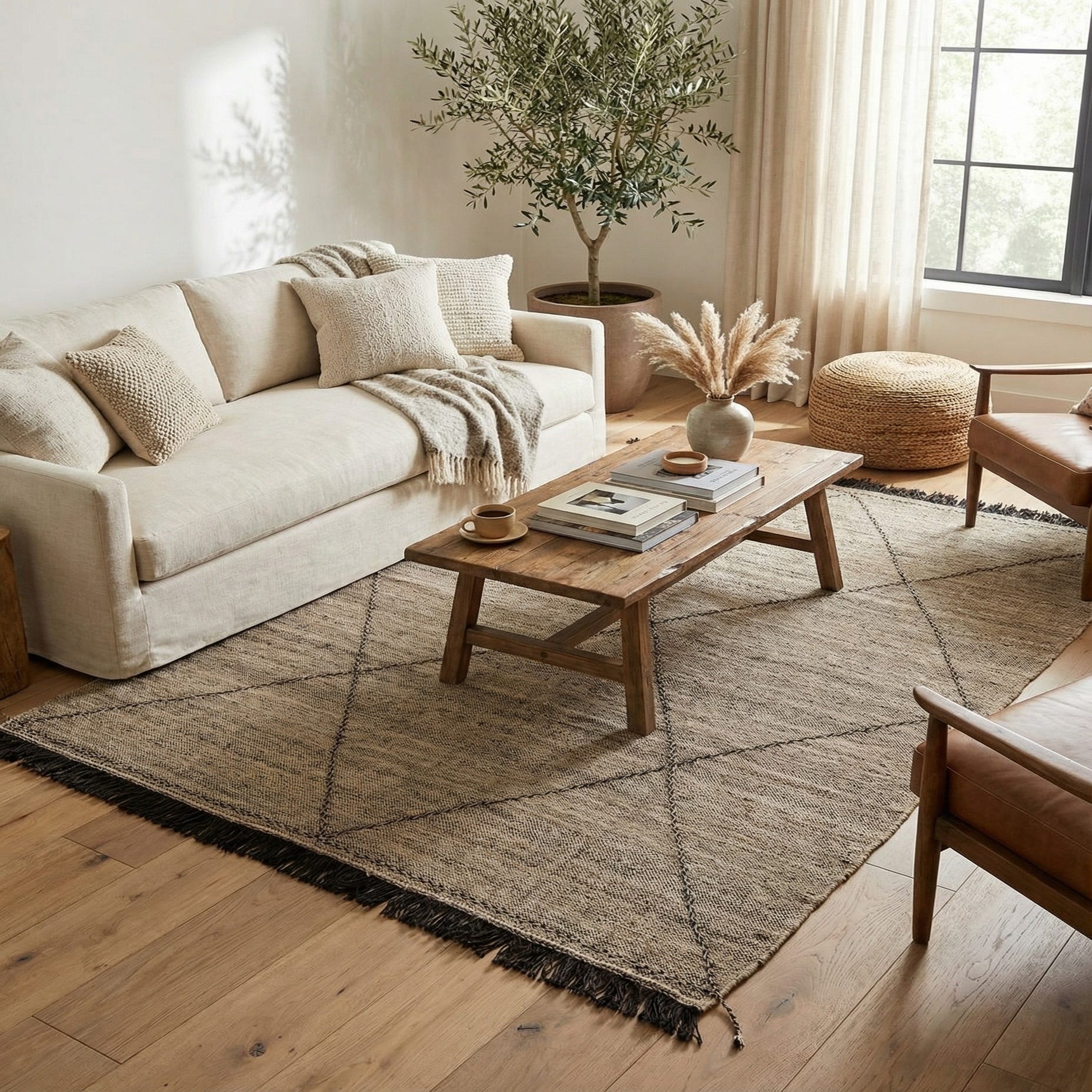 Primary color is Brown. Colors in this rug include: Brown, Natural.