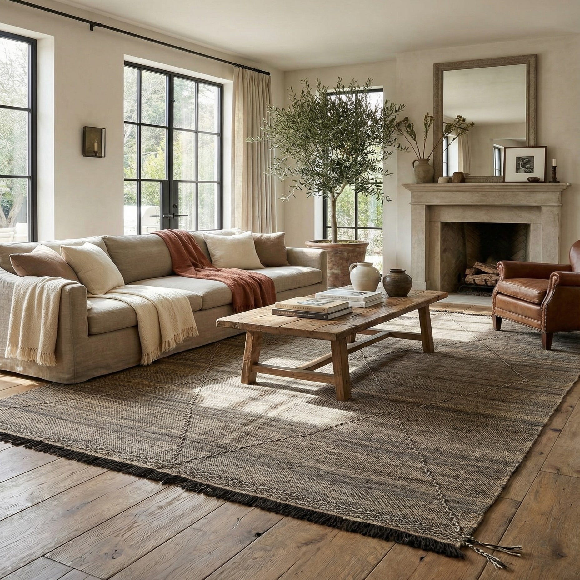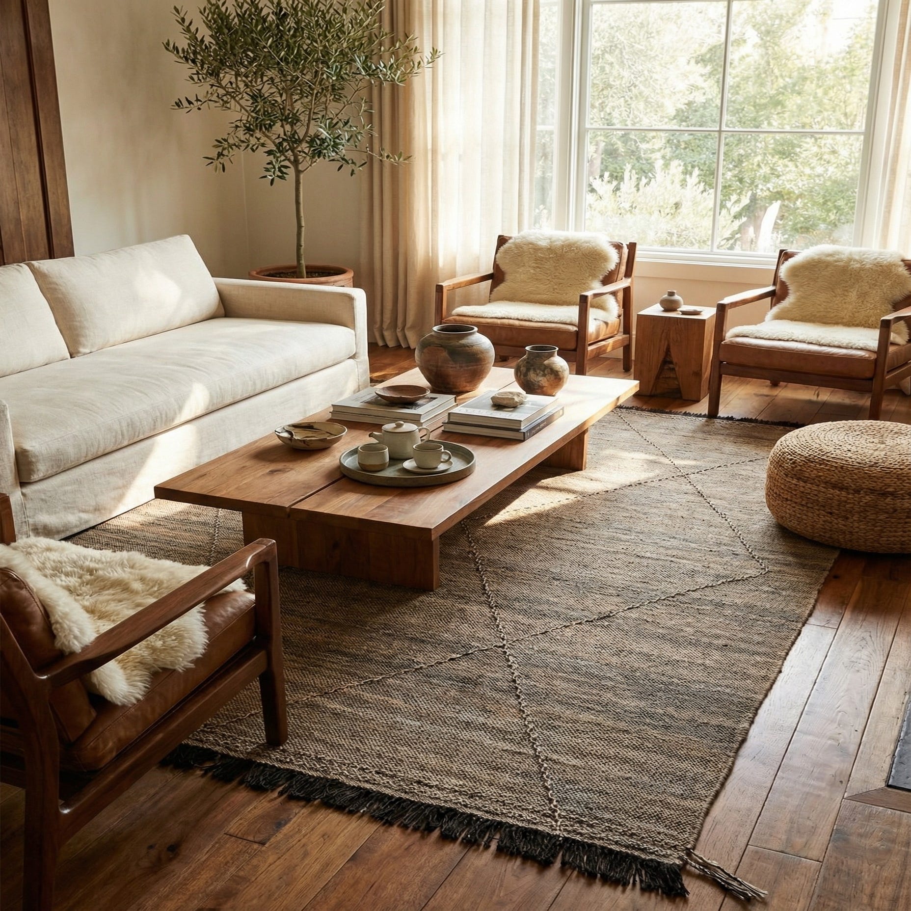 Primary color is Brown. Colors in this rug include: Brown, Natural.
