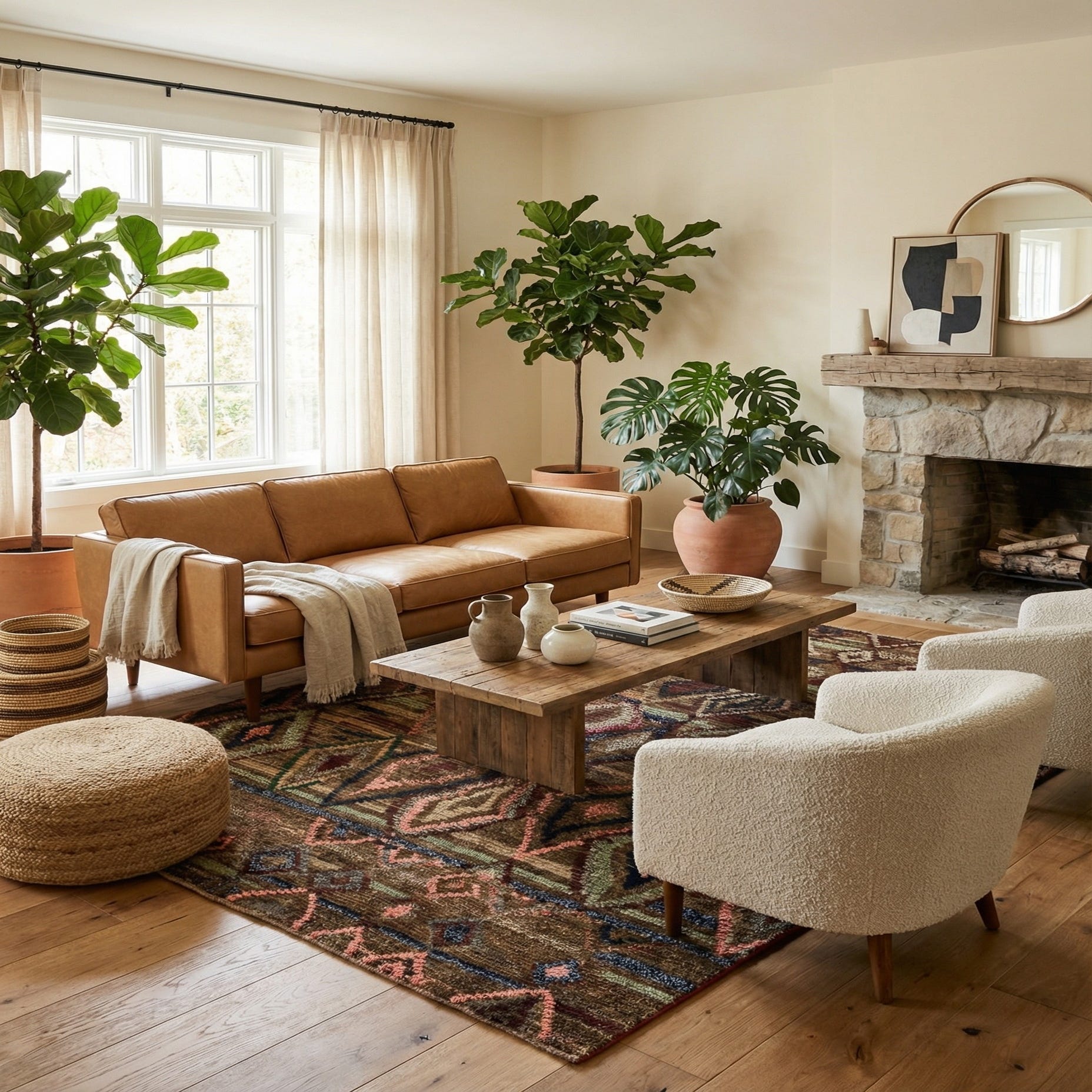 Primary color is Brown. Colors in this rug include: Brown, Beige, Green, Navy Blue, Pink, Maroon.