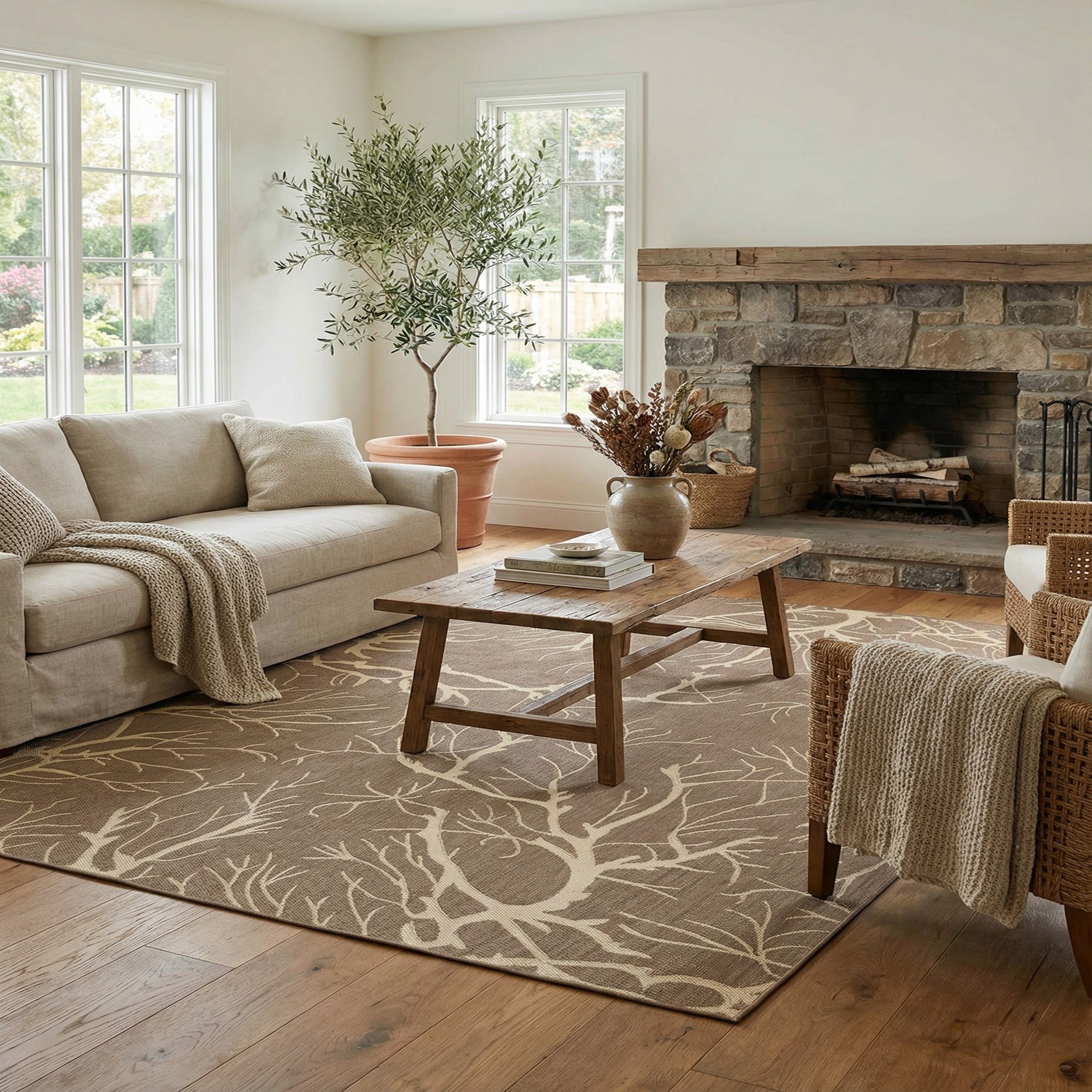 7' x 10' Washable Botanical Indoor / Outdoor Rug