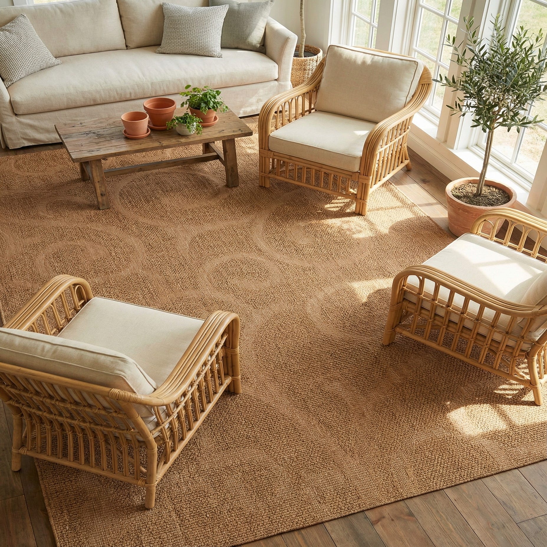 Primary color is Brown. Colors in this rug include: Brown, Beige.