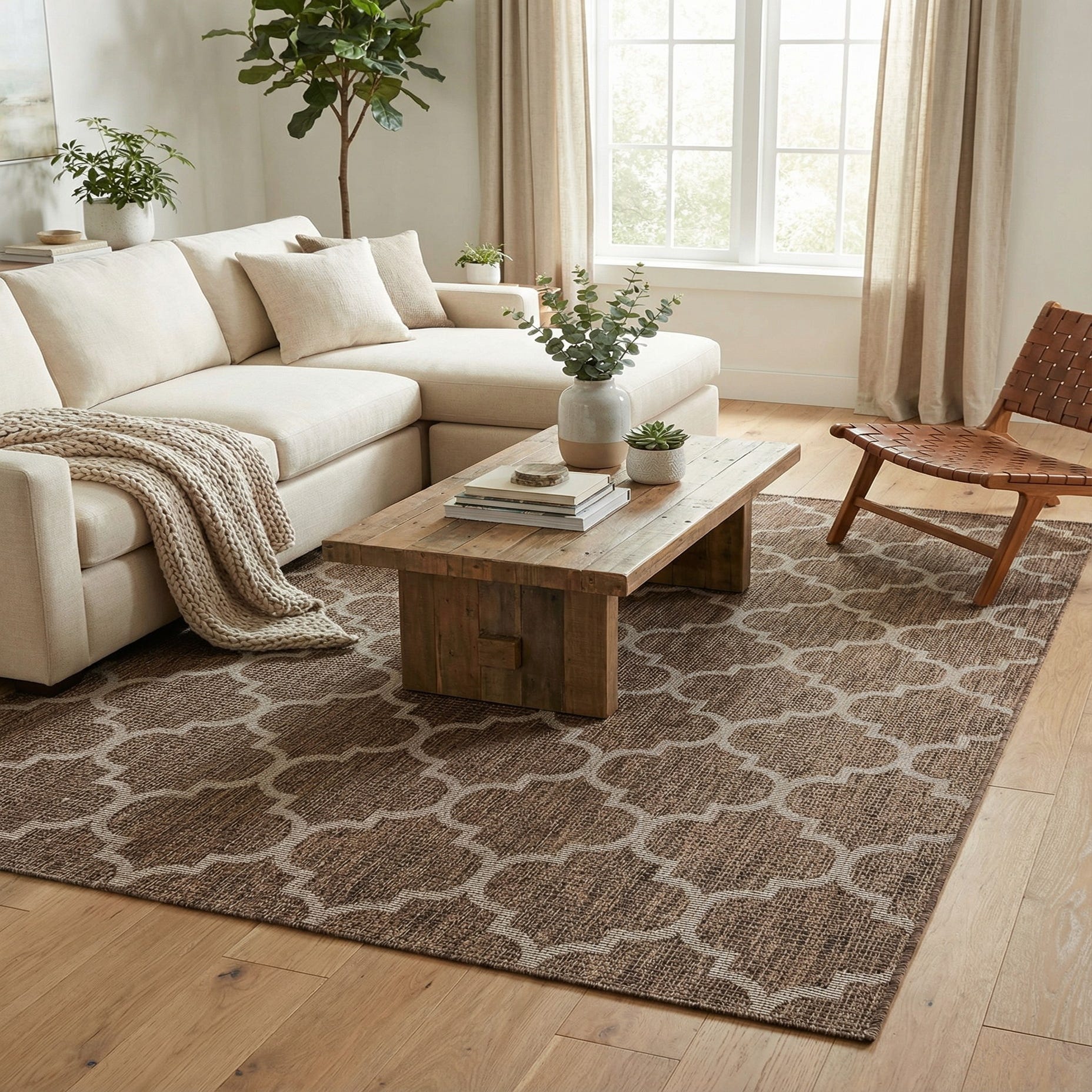 Primary color is Brown. Colors in this rug include: Brown, Beige.