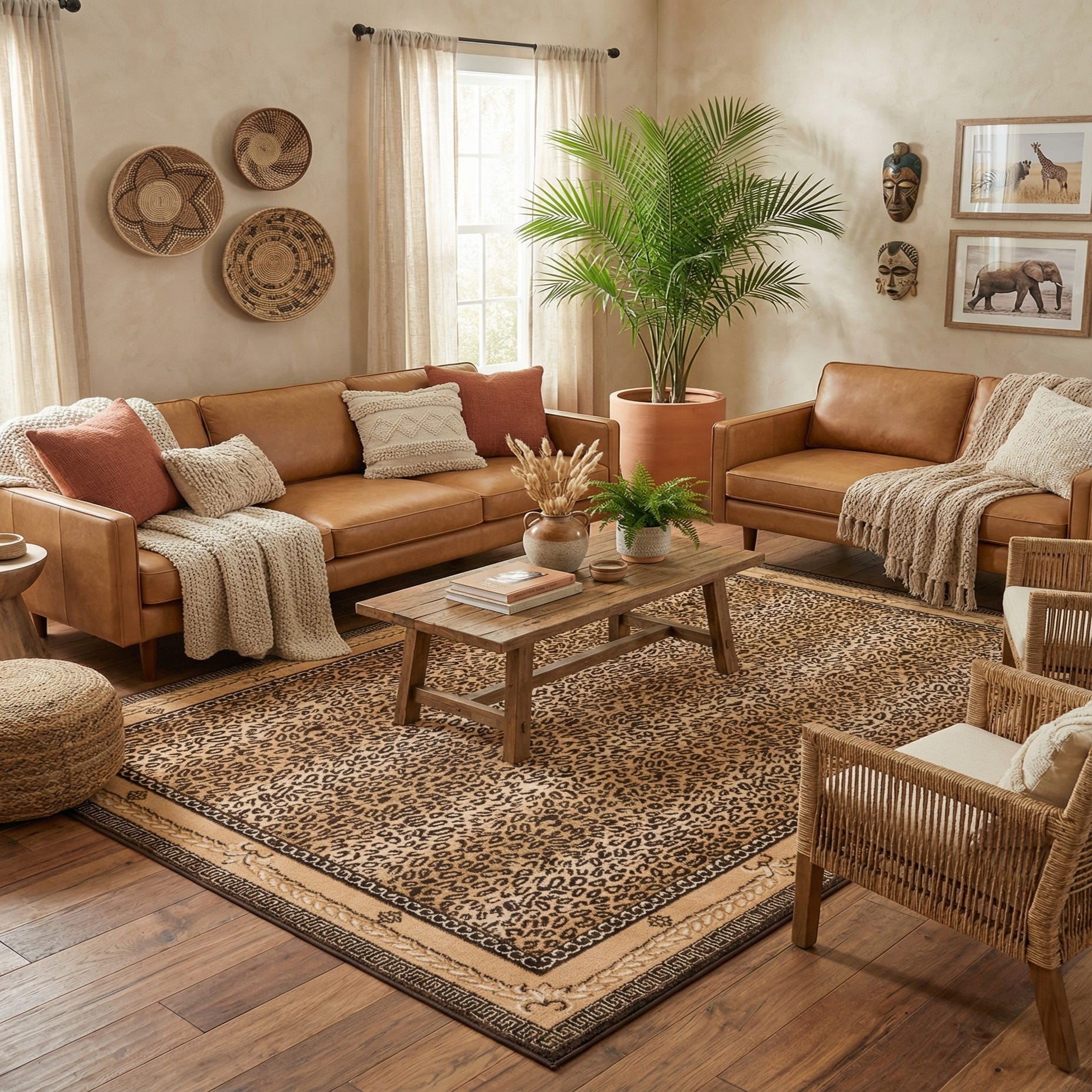 Primary color is Brown. Colors in this rug include: Brown, Beige, Ivory.