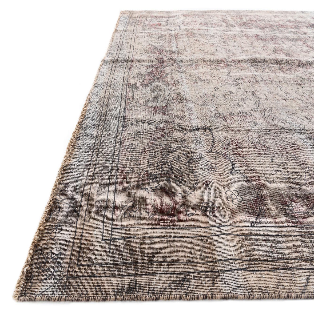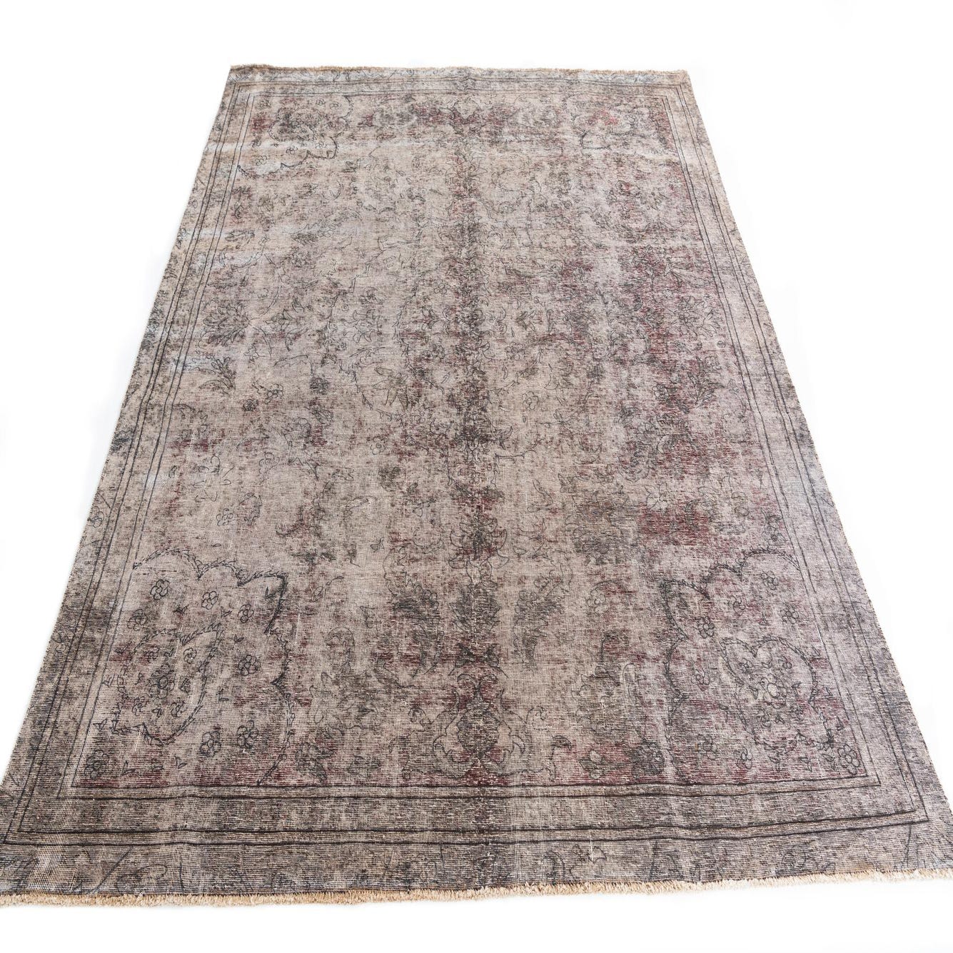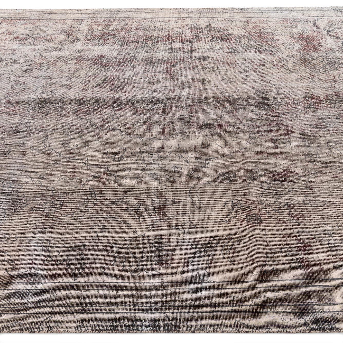 This Persian Ultra Vintage rug is an antique Persian Rug that has been washed, over-dyed, and then shaved down to a low pile. Look at the detail pictures to fully appreciate the uniqueness of this piece.
