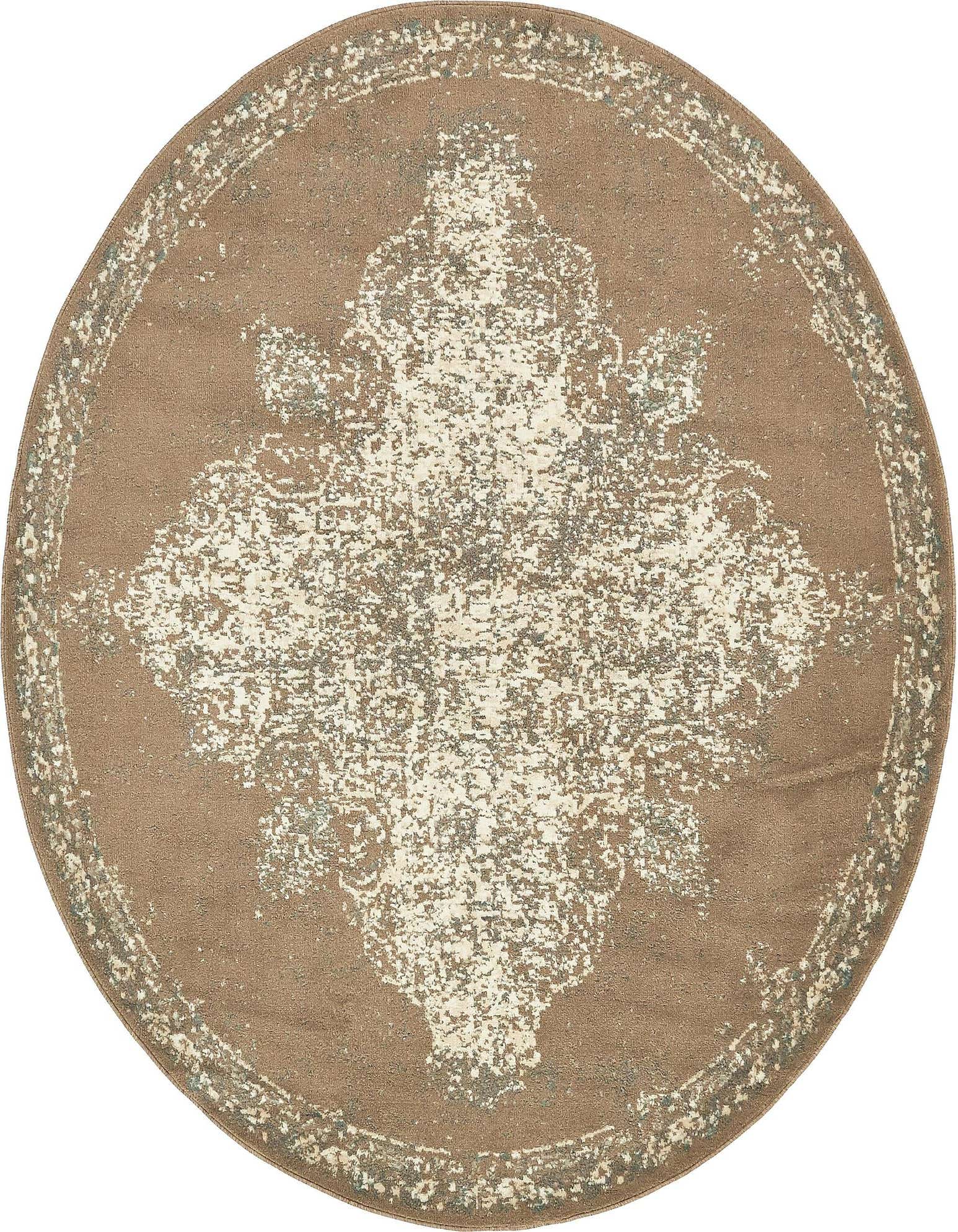 Primary color is Brown. Colors in this rug include: Brown, Green, Ivory, Tan.