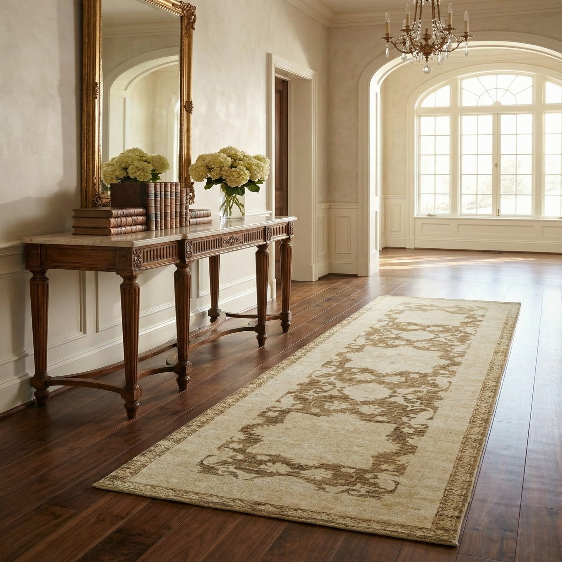 Primary color is Brown. Colors in this rug include: Brown, Beige, Light Brown.