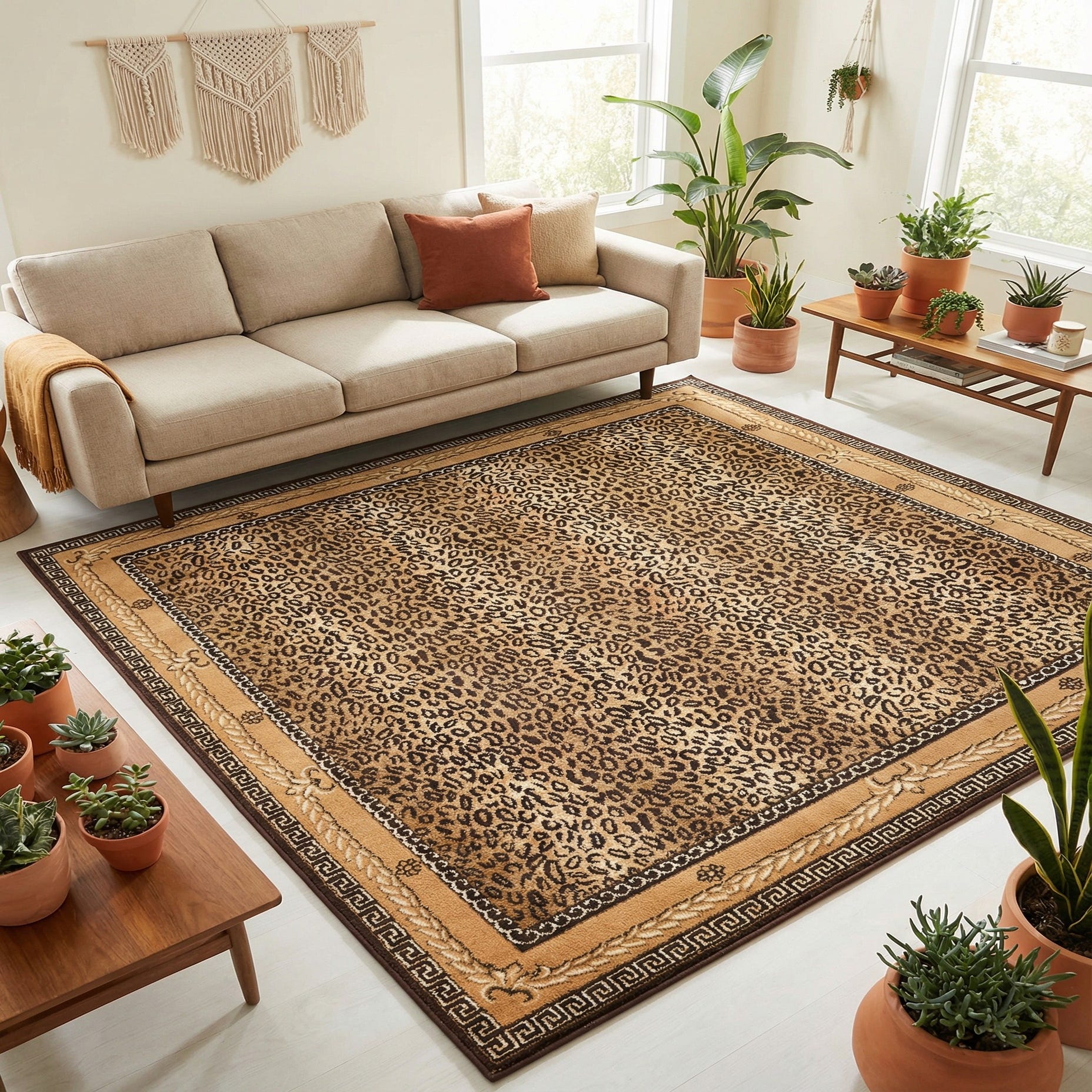Primary color is Brown. Colors in this rug include: Brown, Beige, Ivory.