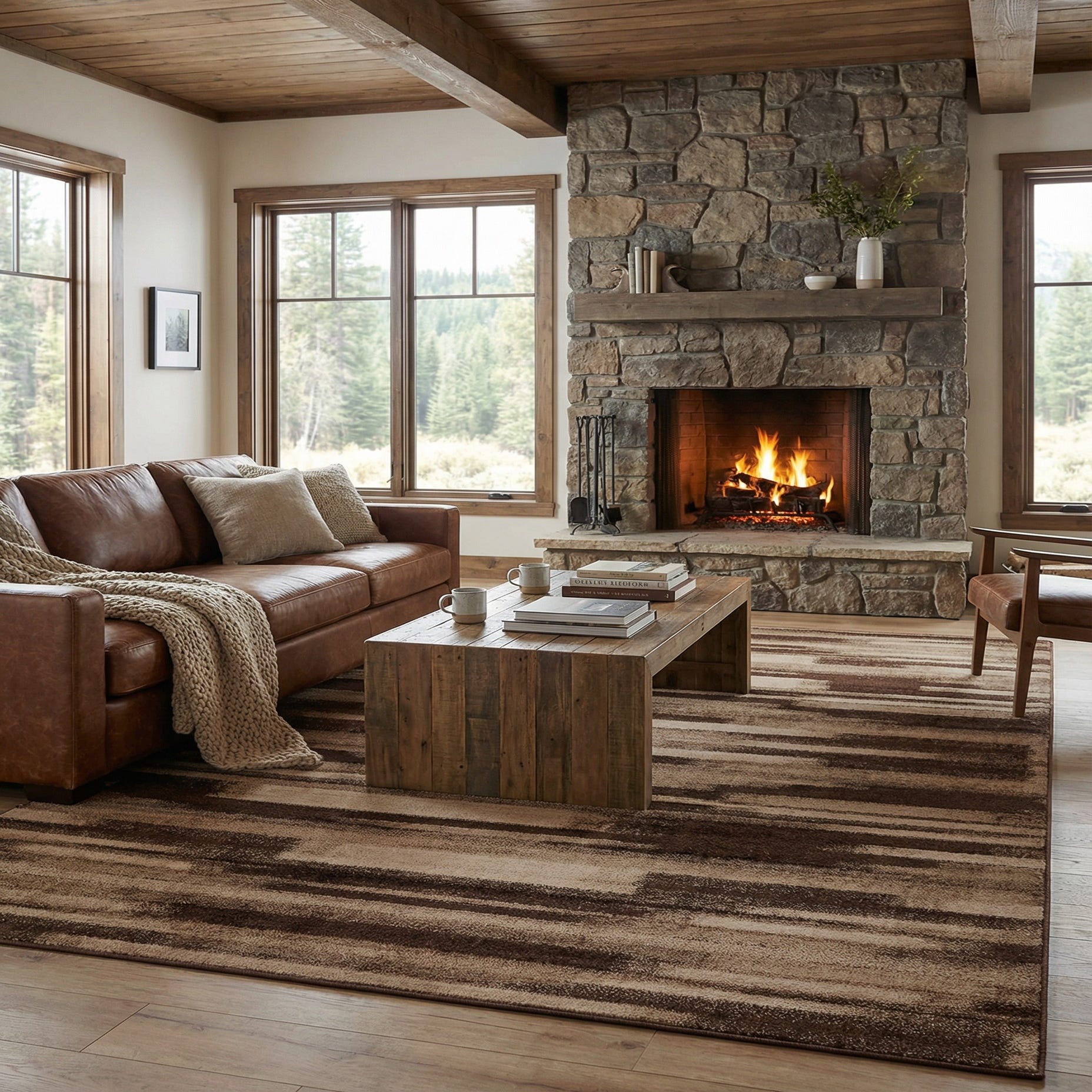 Primary color is Brown. Colors in this rug include: Brown, Beige, Light Brown.