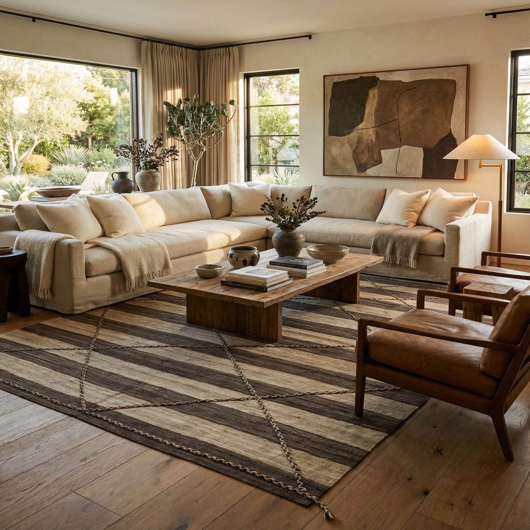 Primary color is Brown. Colors in this rug include: Brown, Beige, Light Brown.