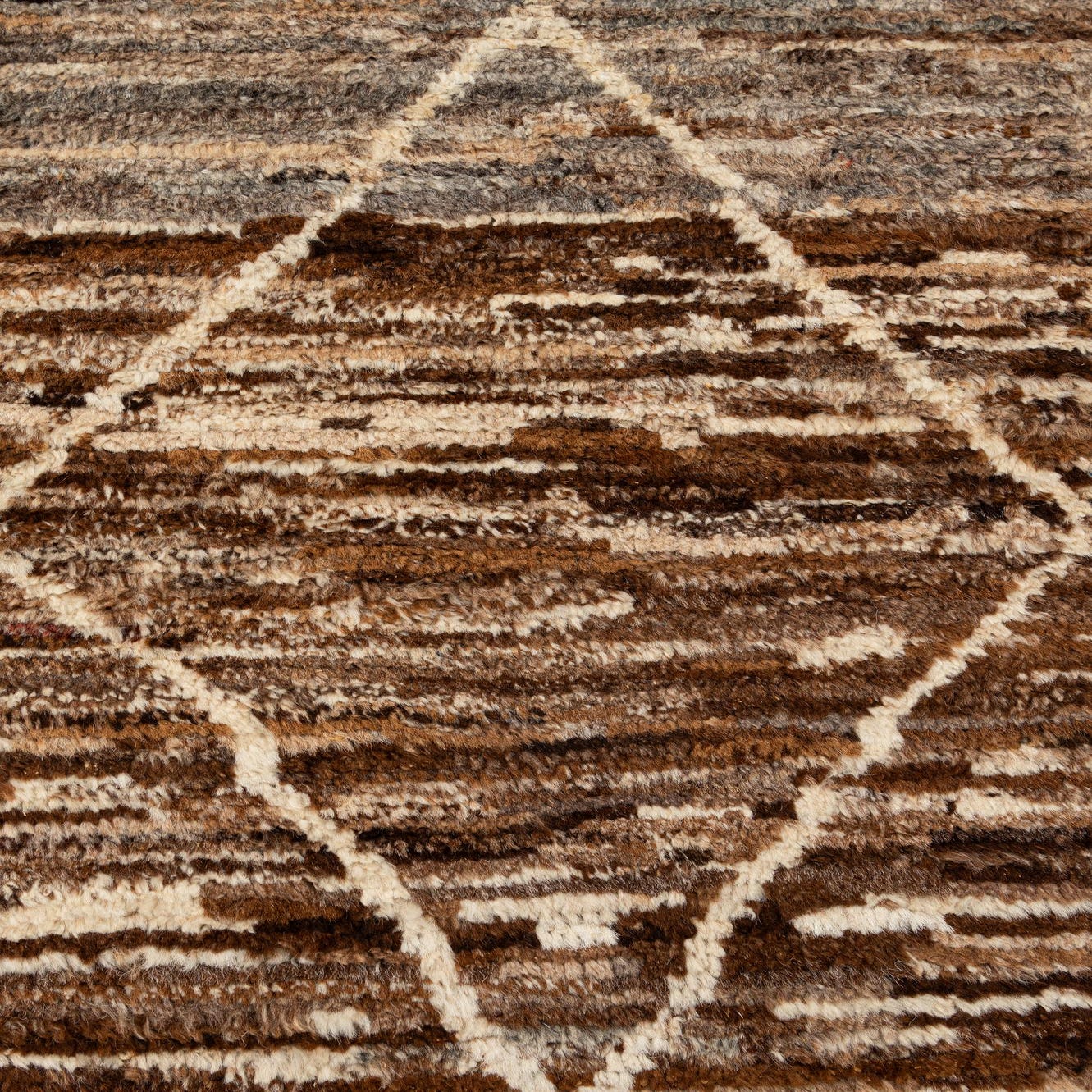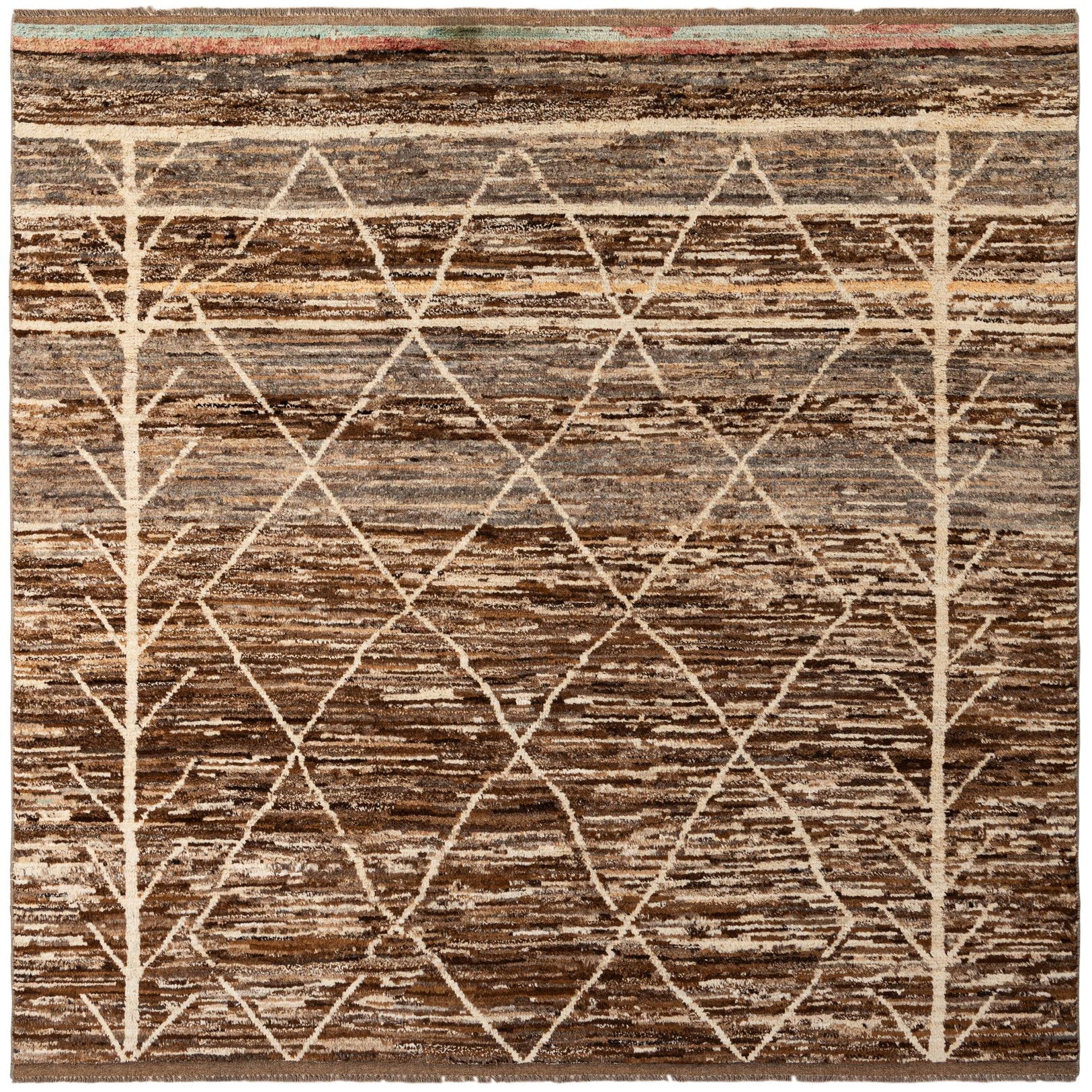 Primary color is Brown. Colors in this rug include: Brown, Light Brown, Ivory, Beige.