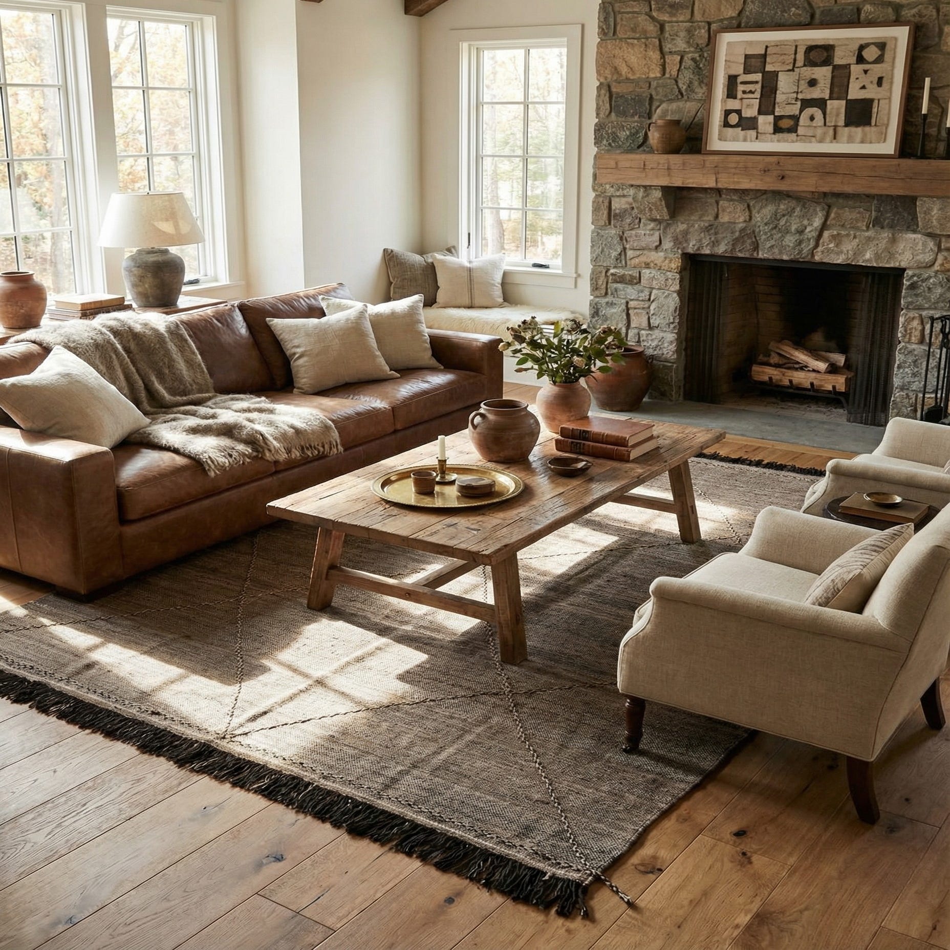Primary color is Brown. Colors in this rug include: Brown, Natural.