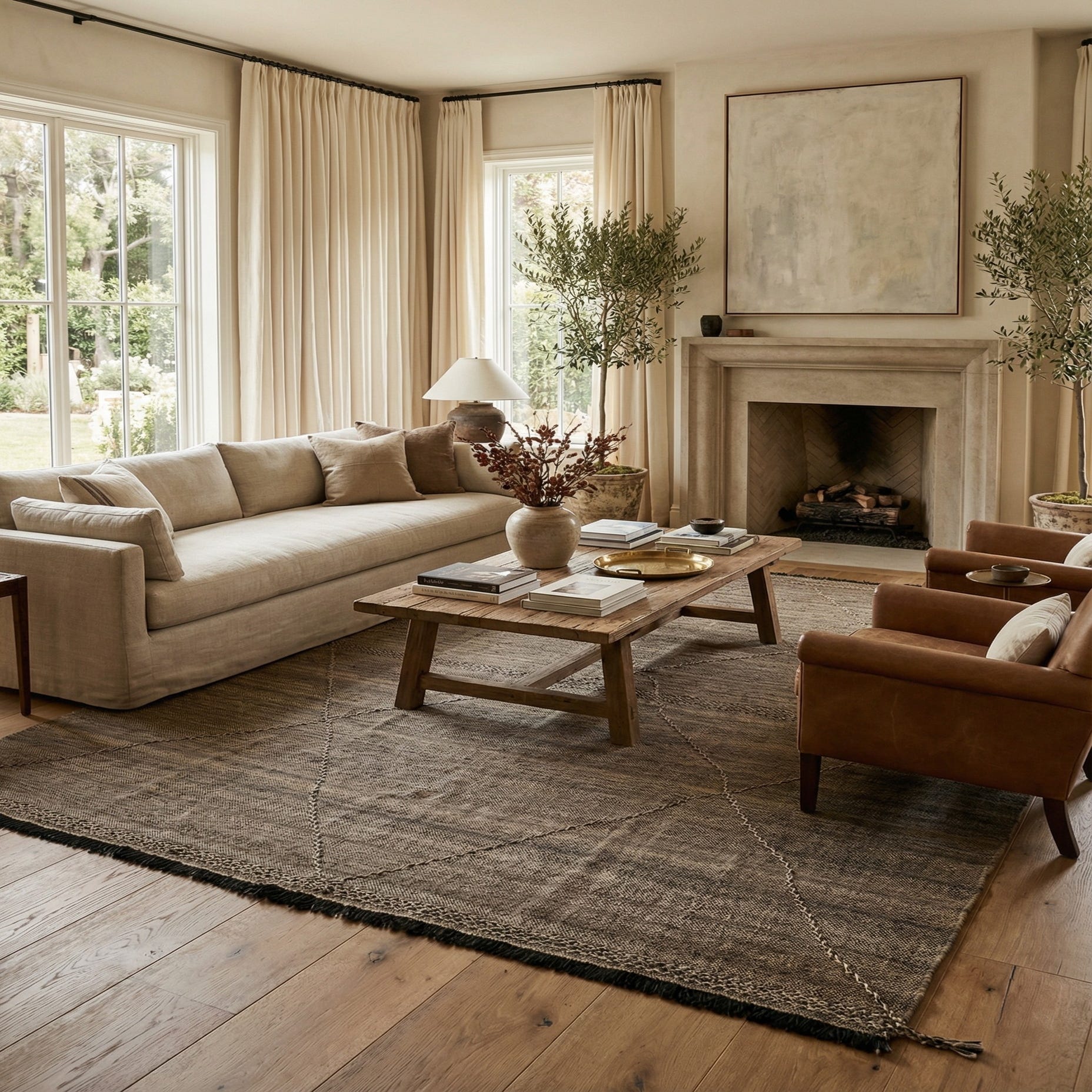 Primary color is Brown. Colors in this rug include: Brown, Natural.