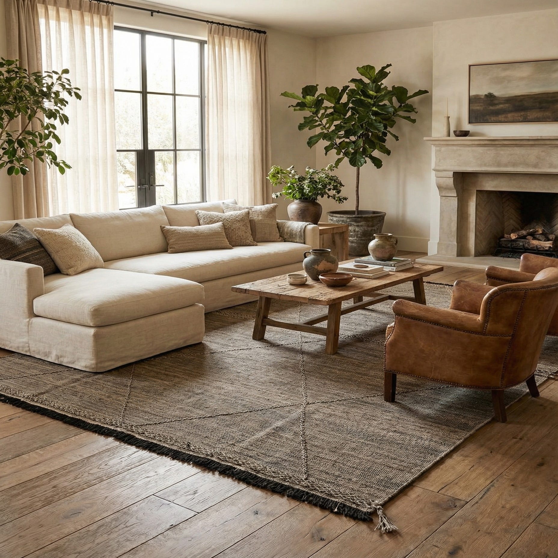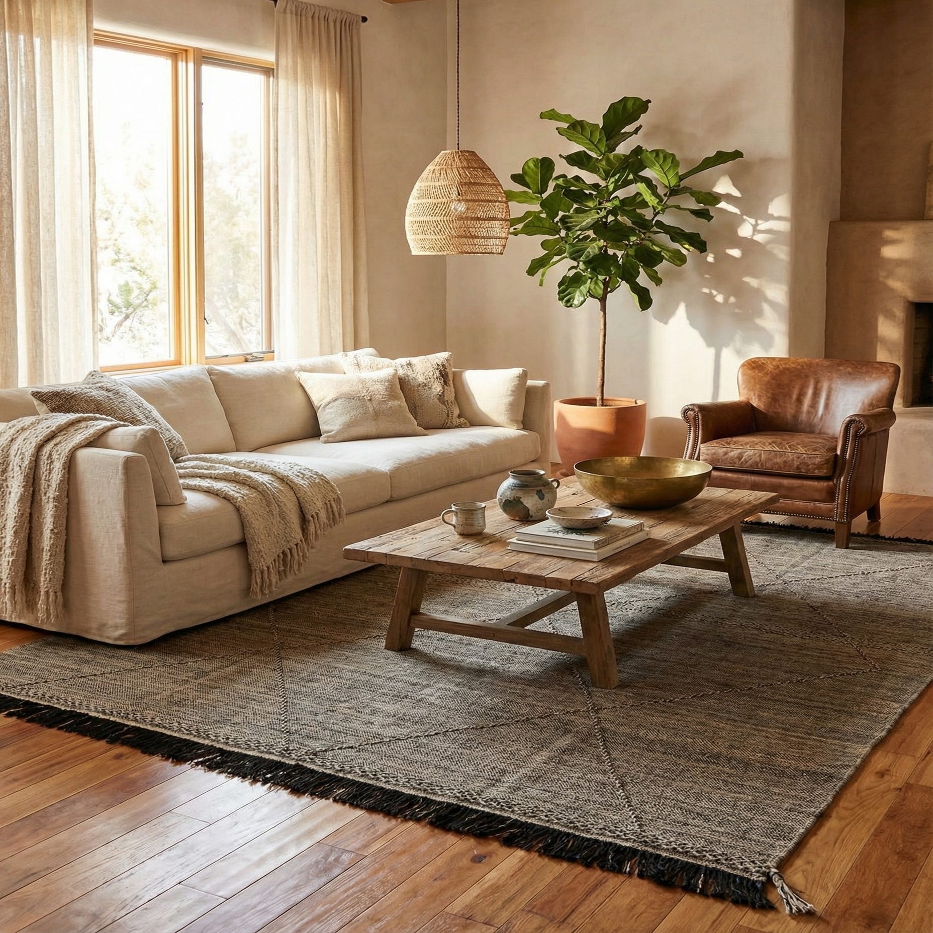 Primary color is Brown. Colors in this rug include: Brown, Natural.