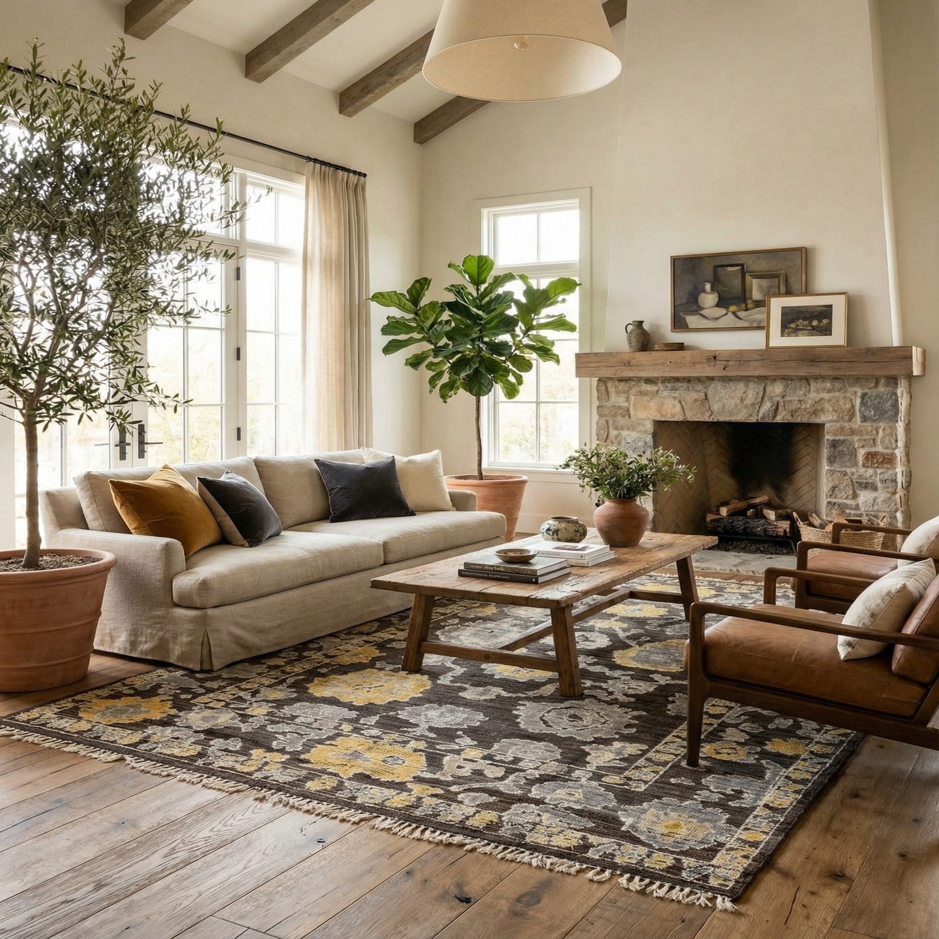 Primary color is Brown. Colors in this rug include: Brown, Beige, Gray, Ivory, Light Brown, Yellow.