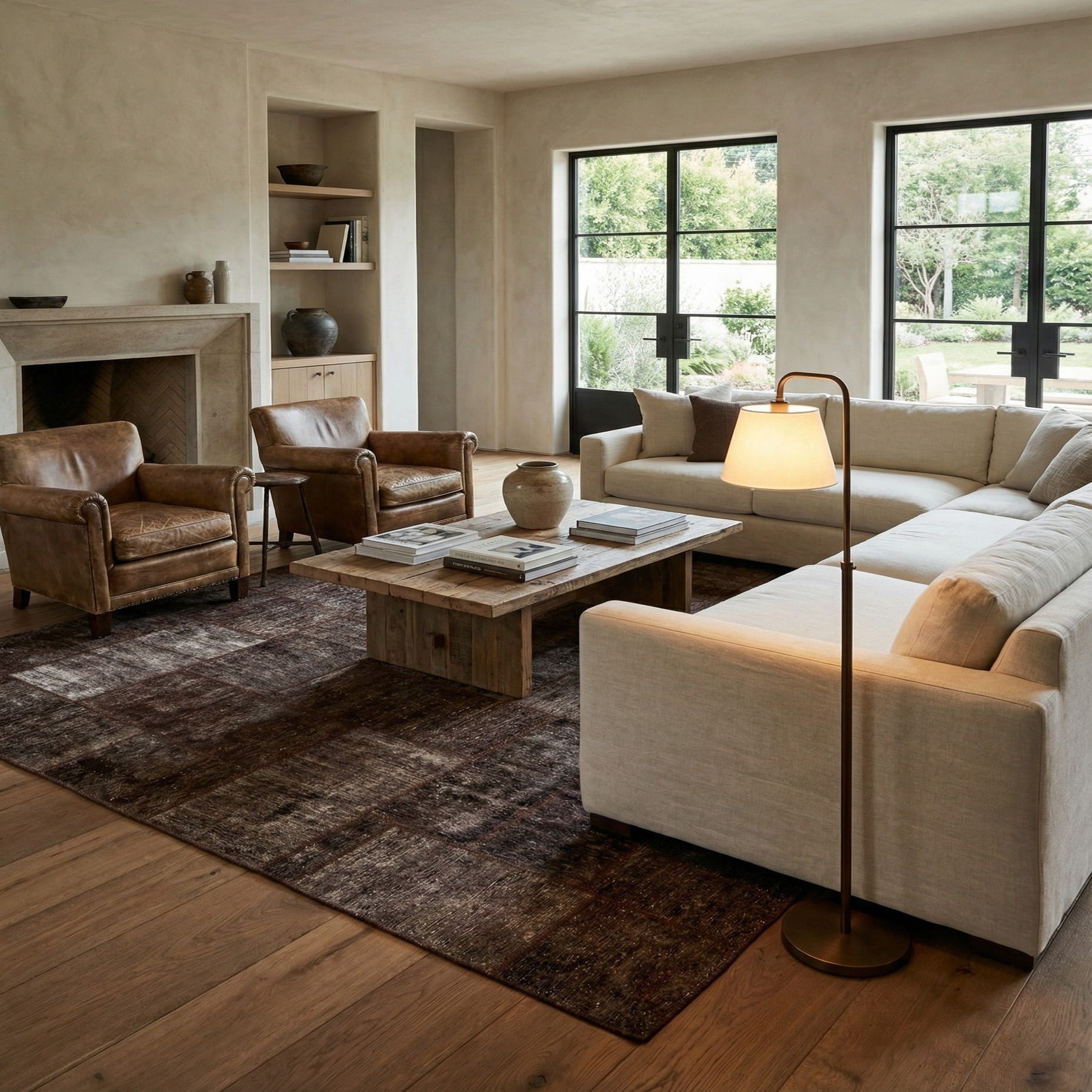 Primary color is Brown. Colors in this rug include: Brown, Ivory, Light Brown.