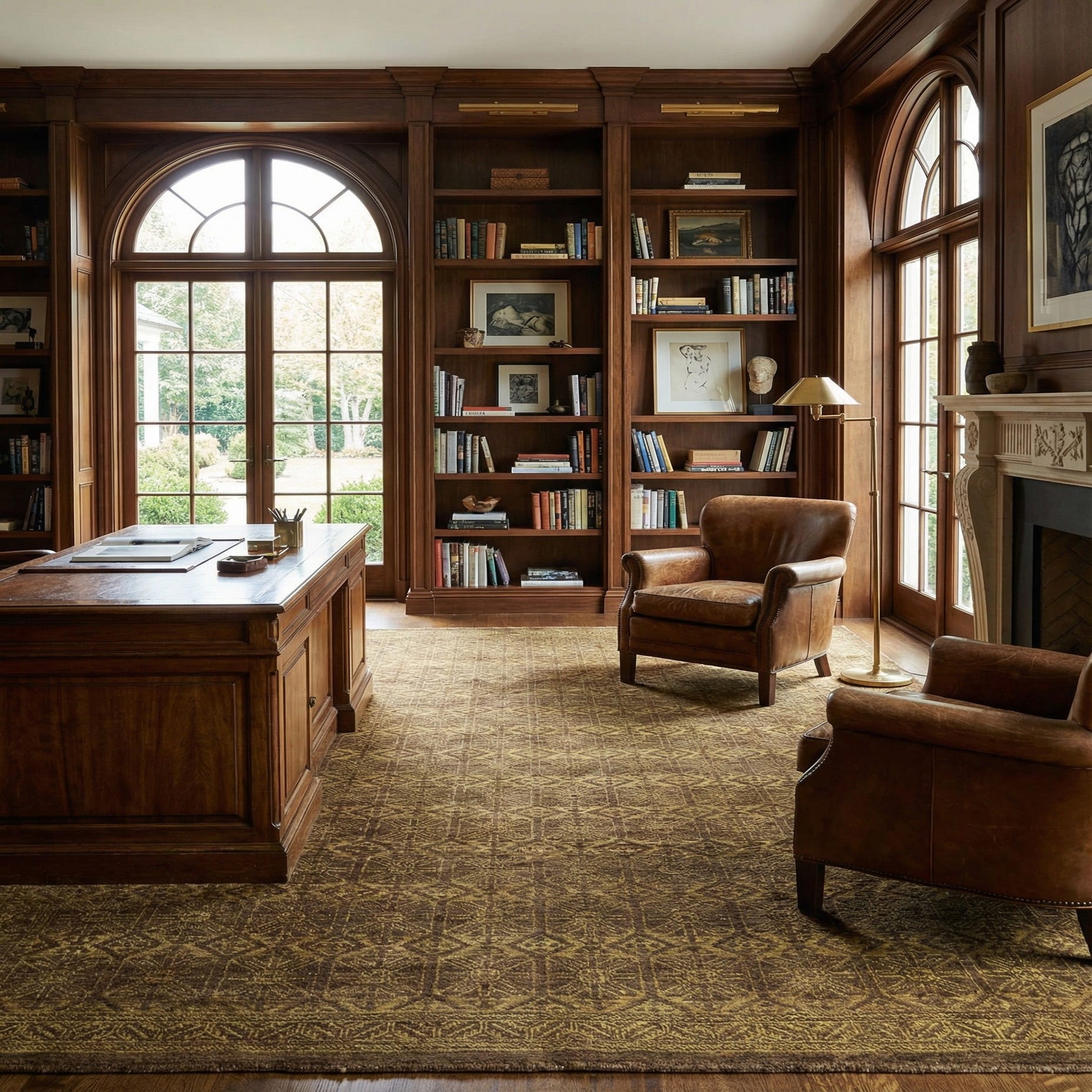 Primary color is Brown. Colors in this rug include: Brown, Olive.