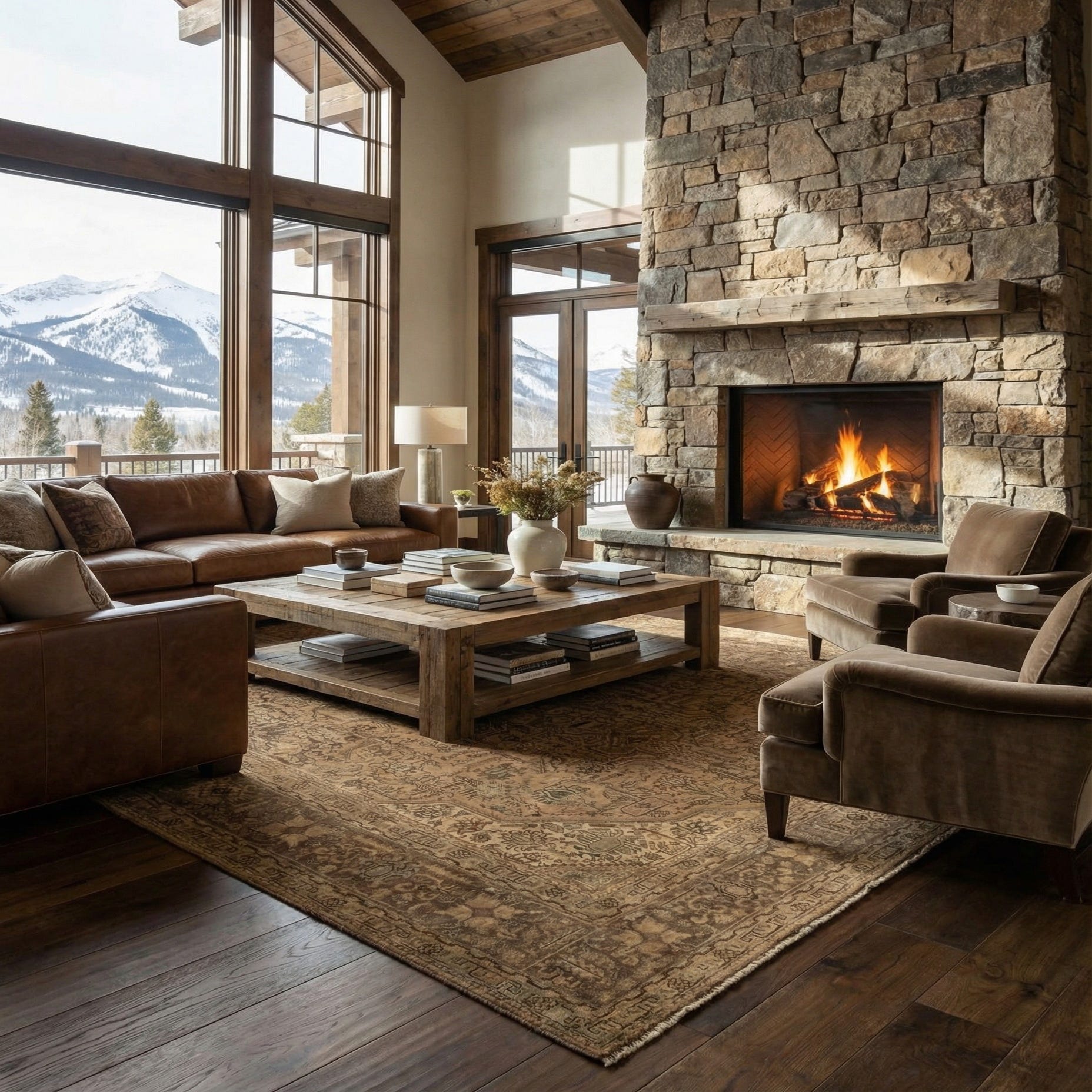 Primary color is Brown. Colors in this rug include: Brown, Beige, Green.