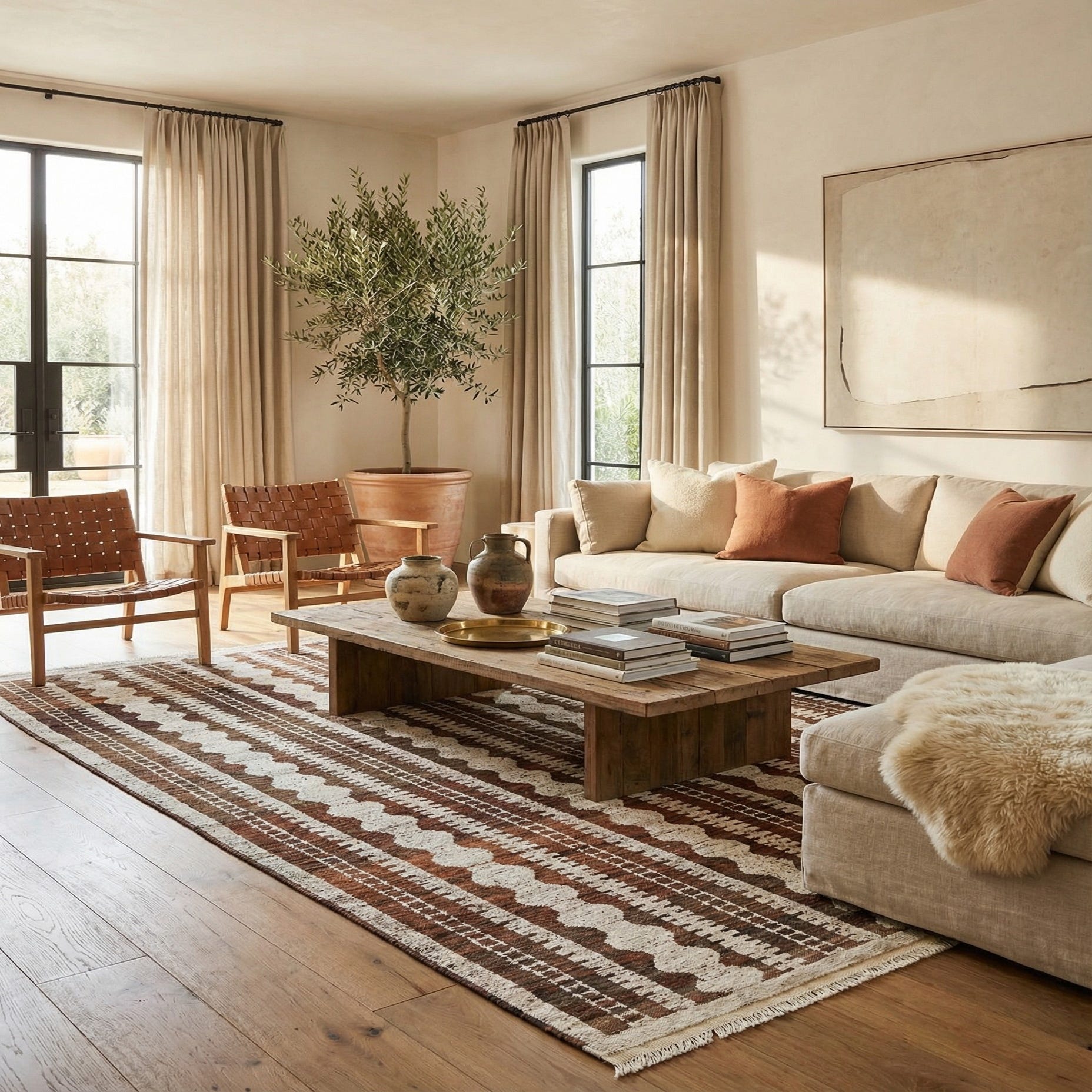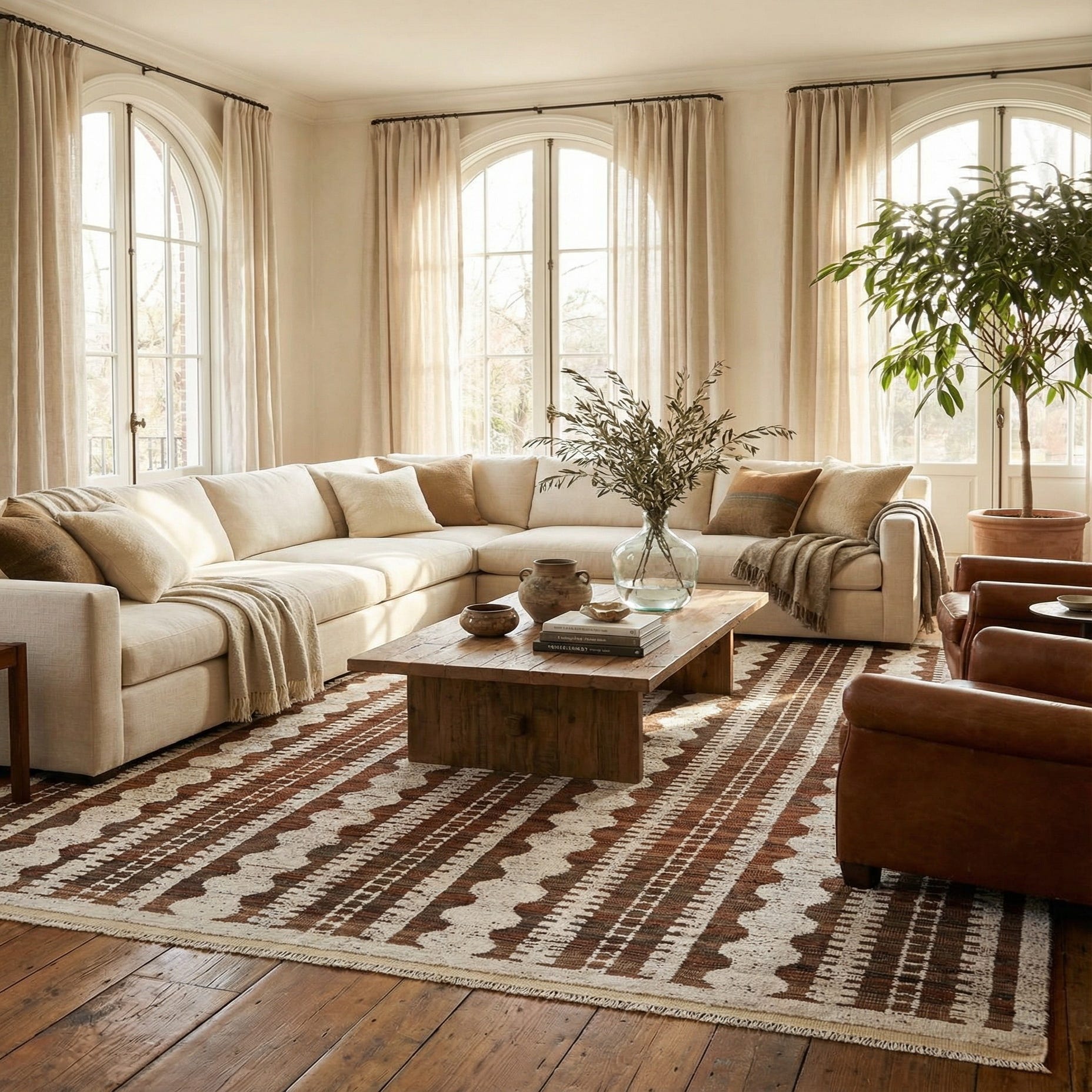 Primary color is Brown. Colors in this rug include: Brown, Ivory.