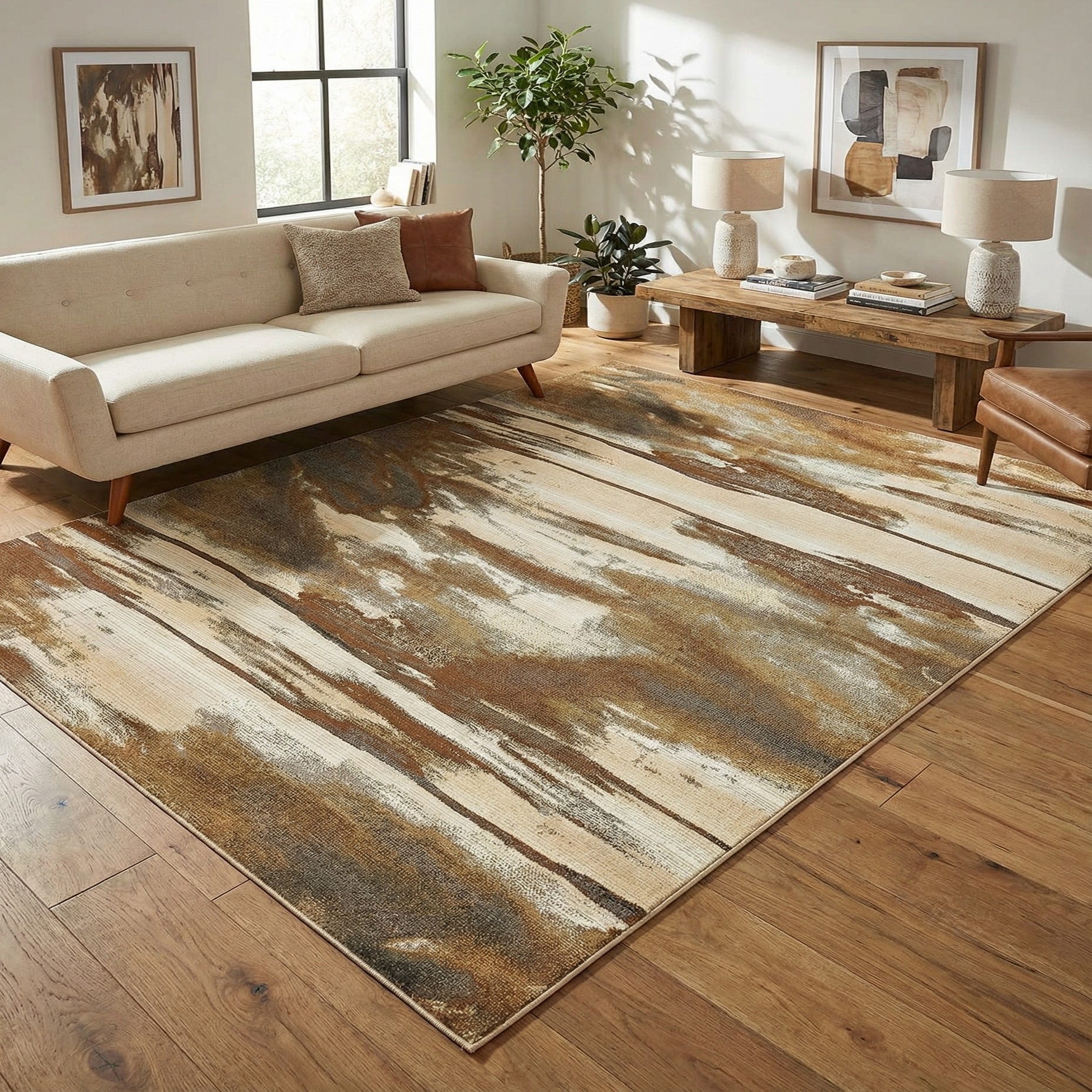 Primary color is Brown. Colors in this rug include: Brown, Beige, Gray.