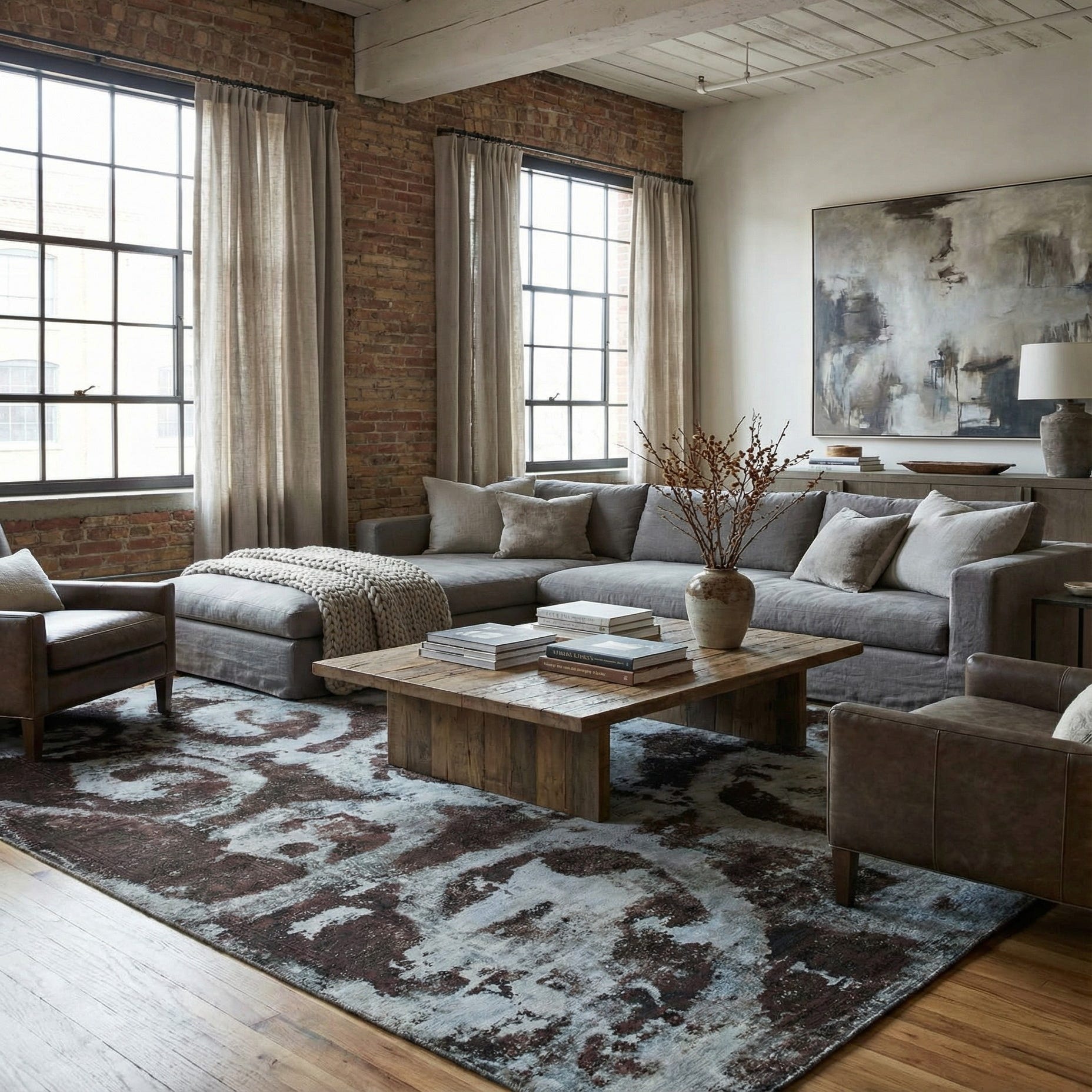 Primary color is Brown. Colors in this rug include: Brown, Light Blue, Black.