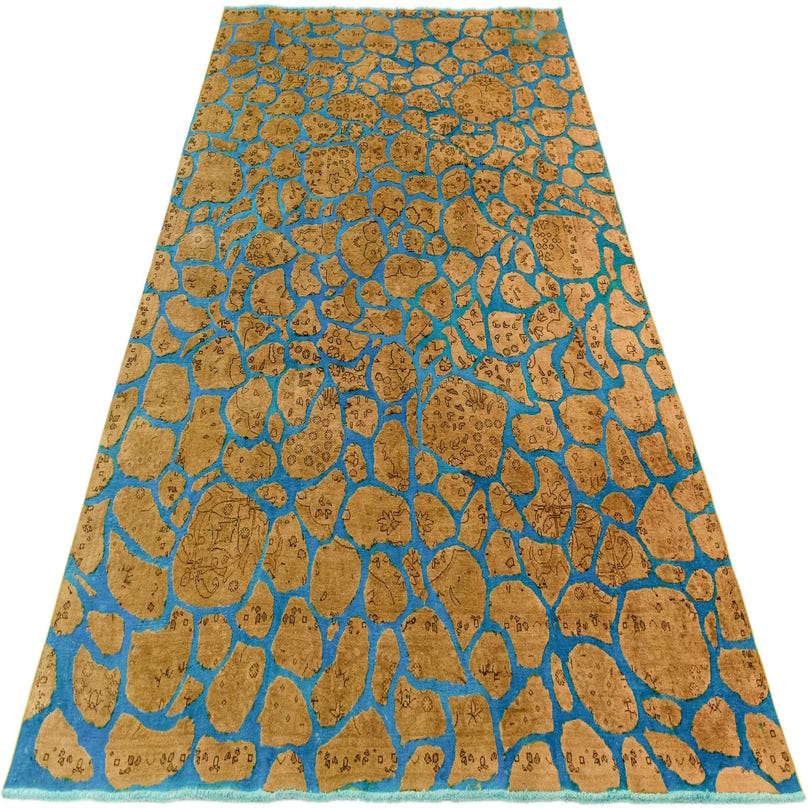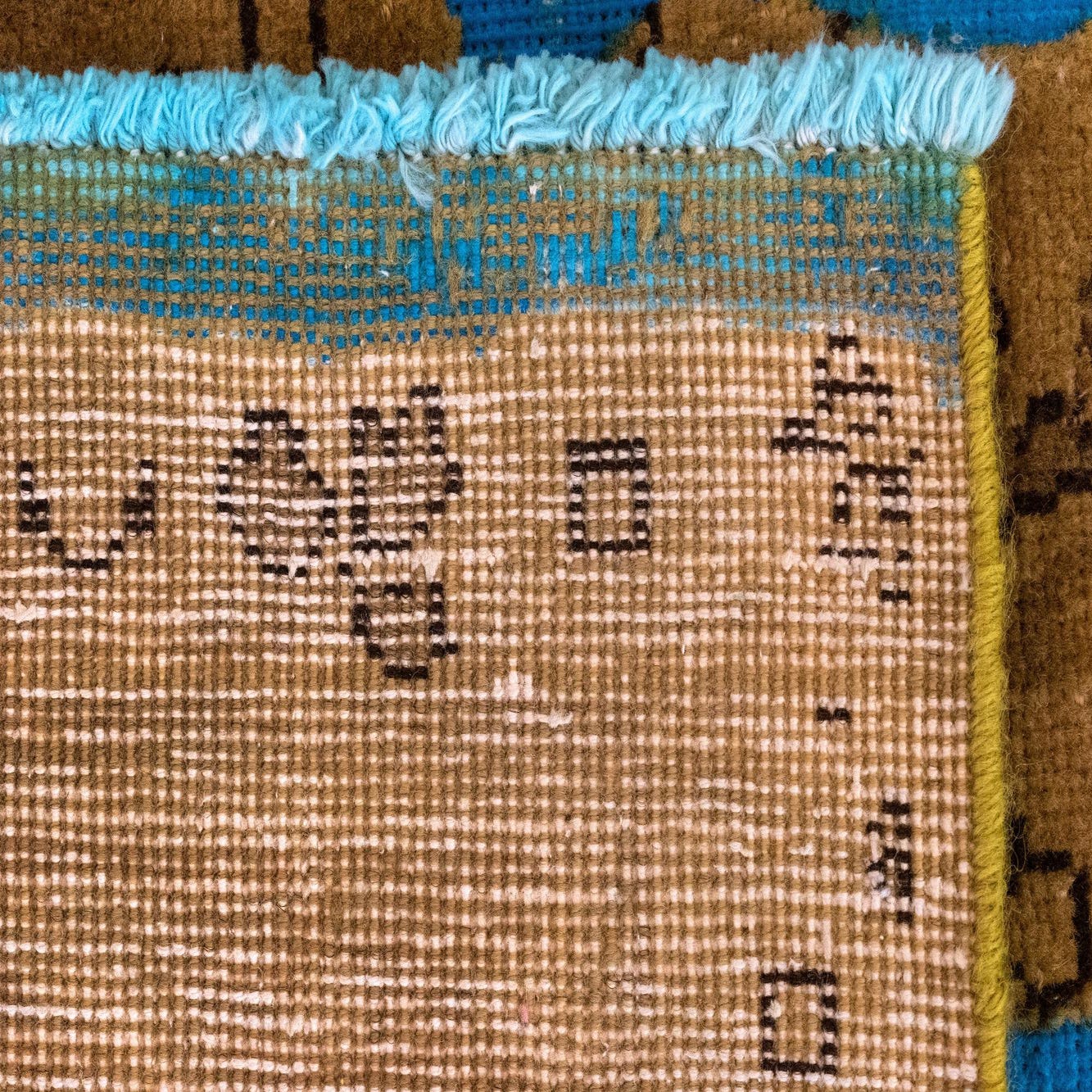 Primary color is Brown. Colors in this rug include: Brown, Blue.